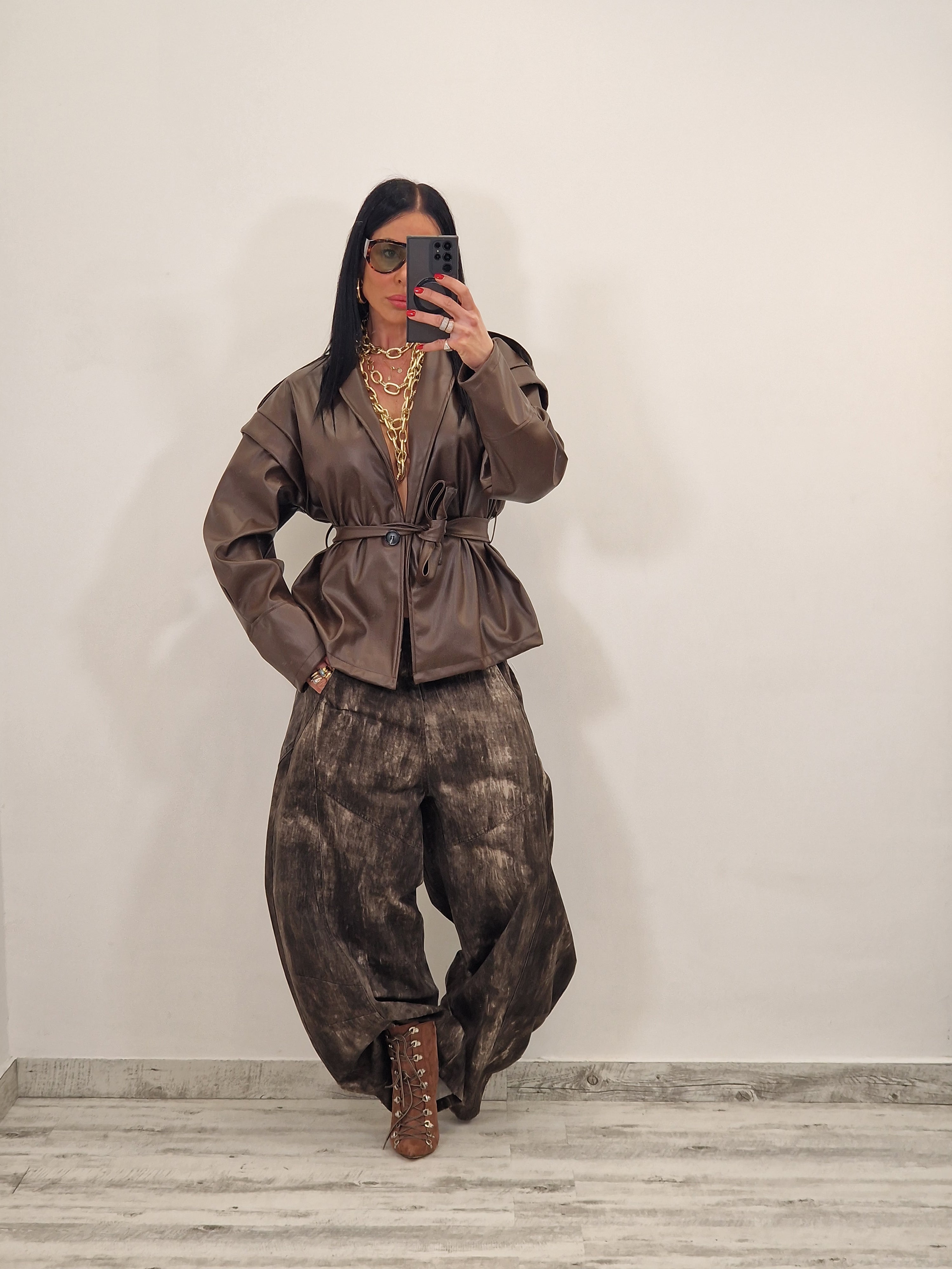 Jacket in ecopelle con cintura