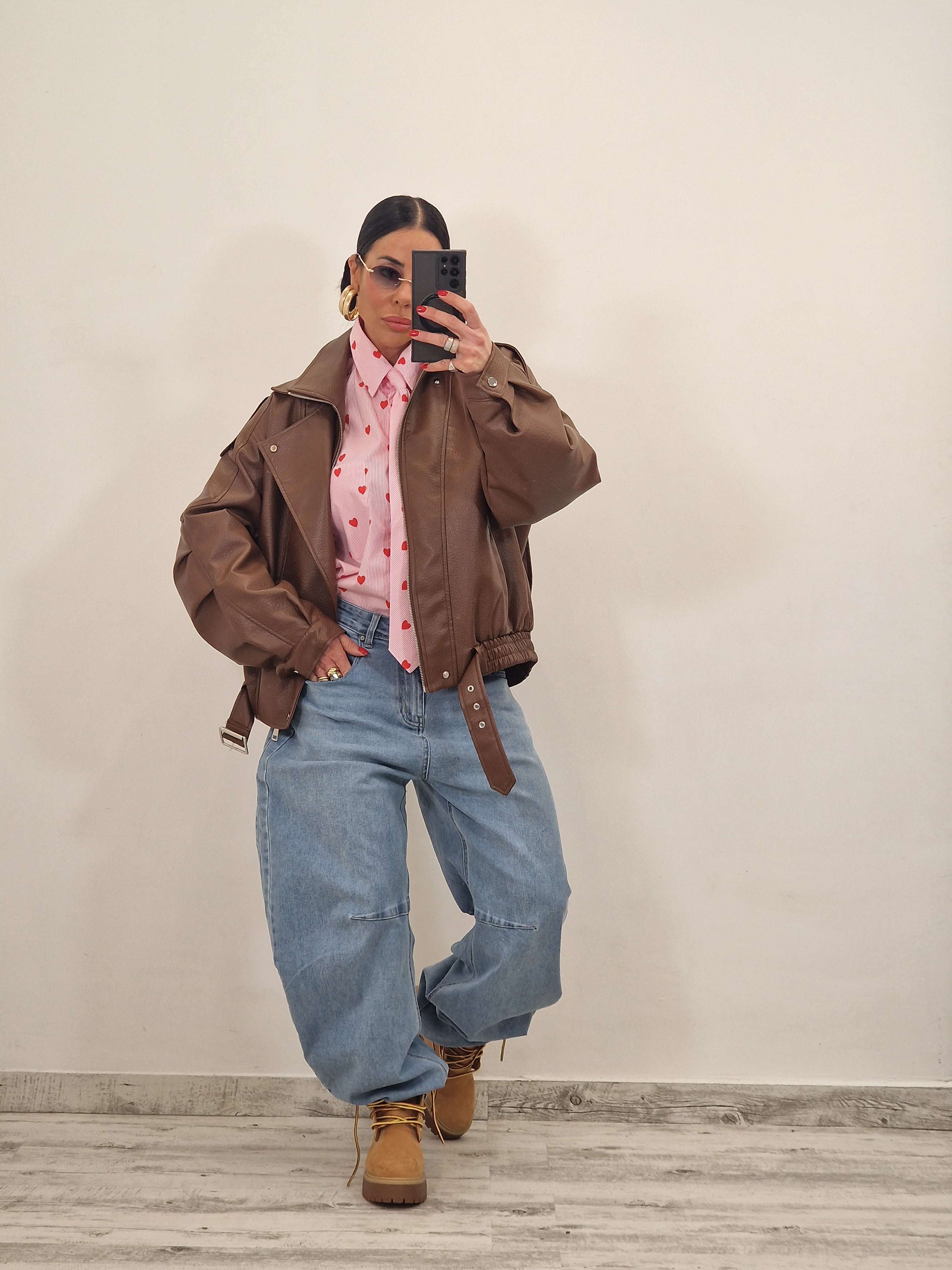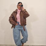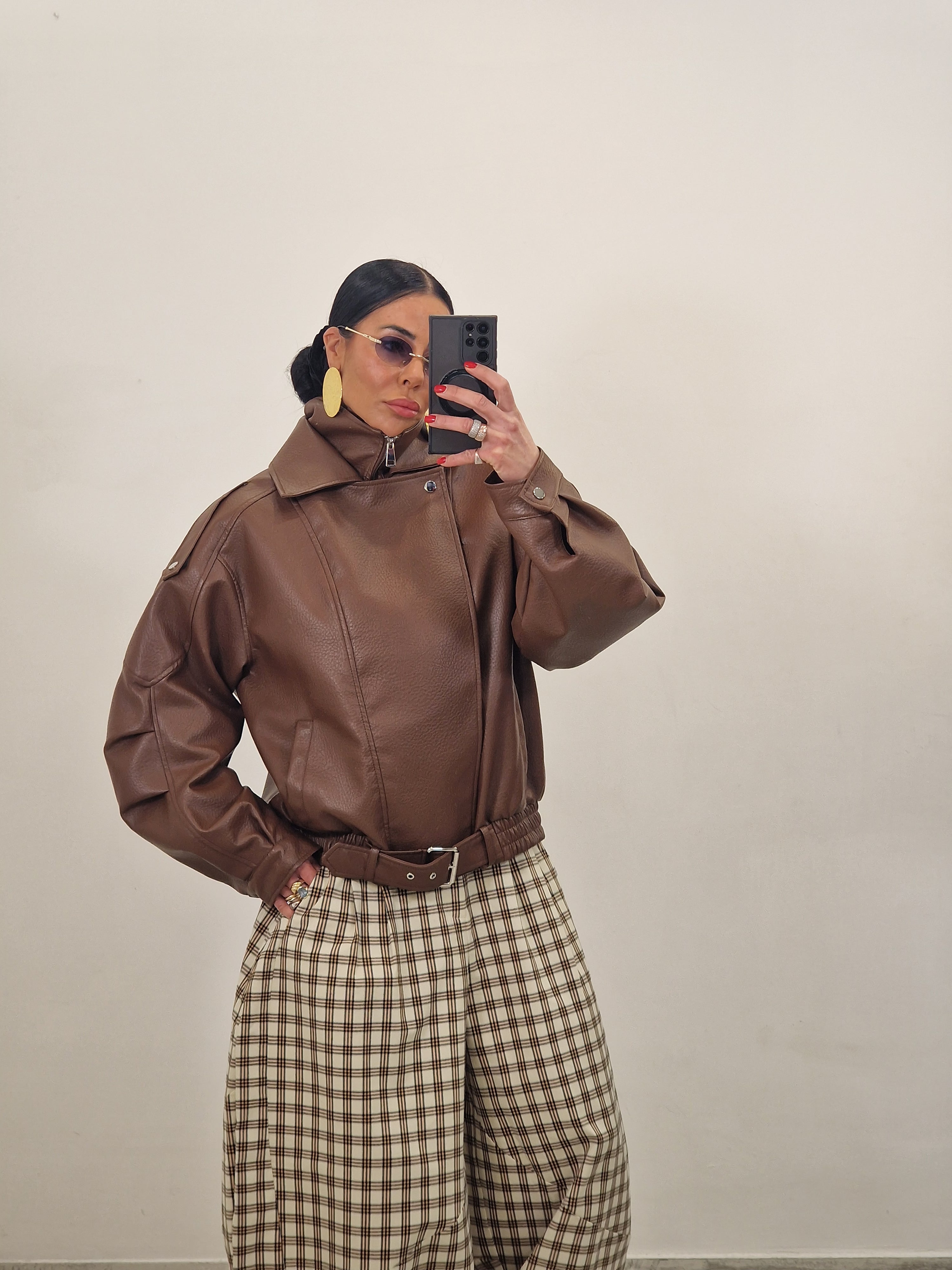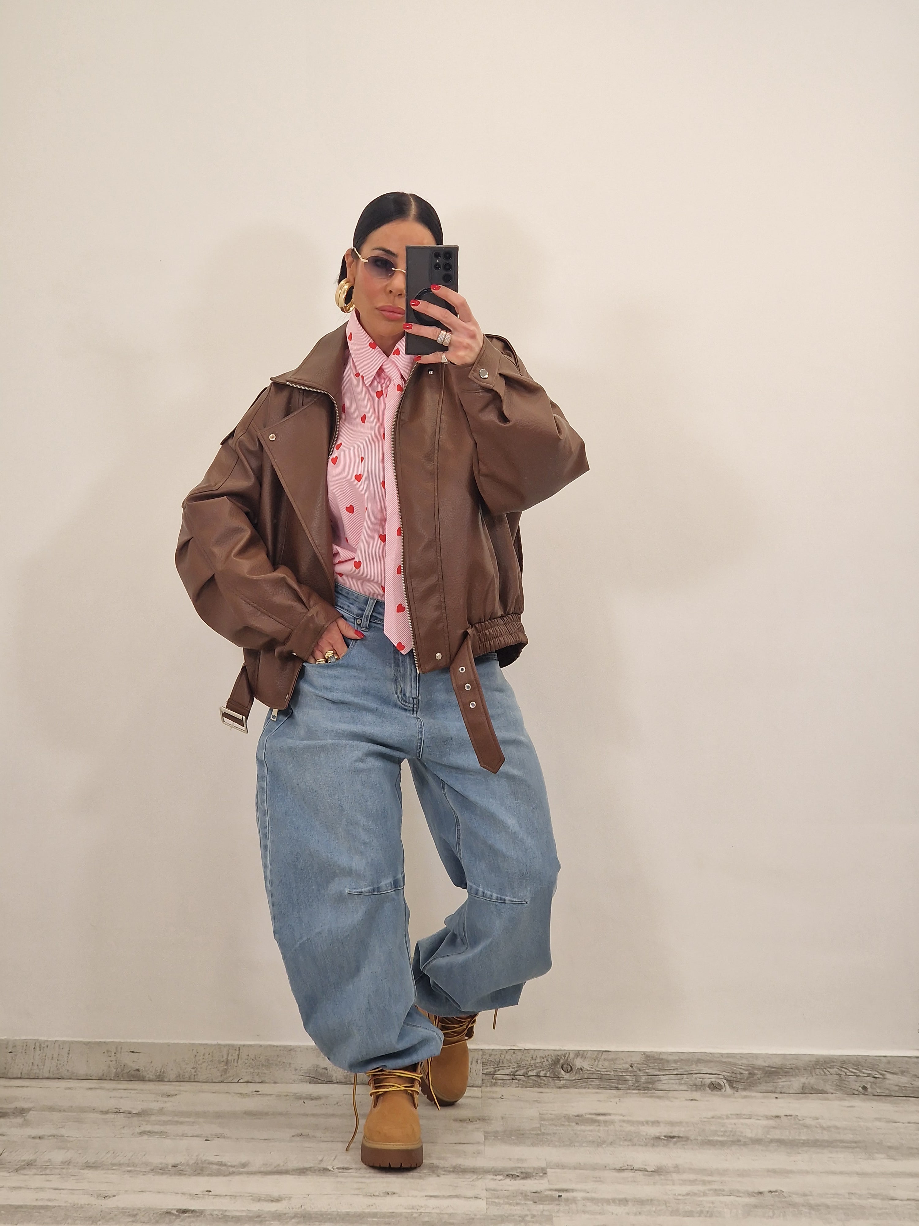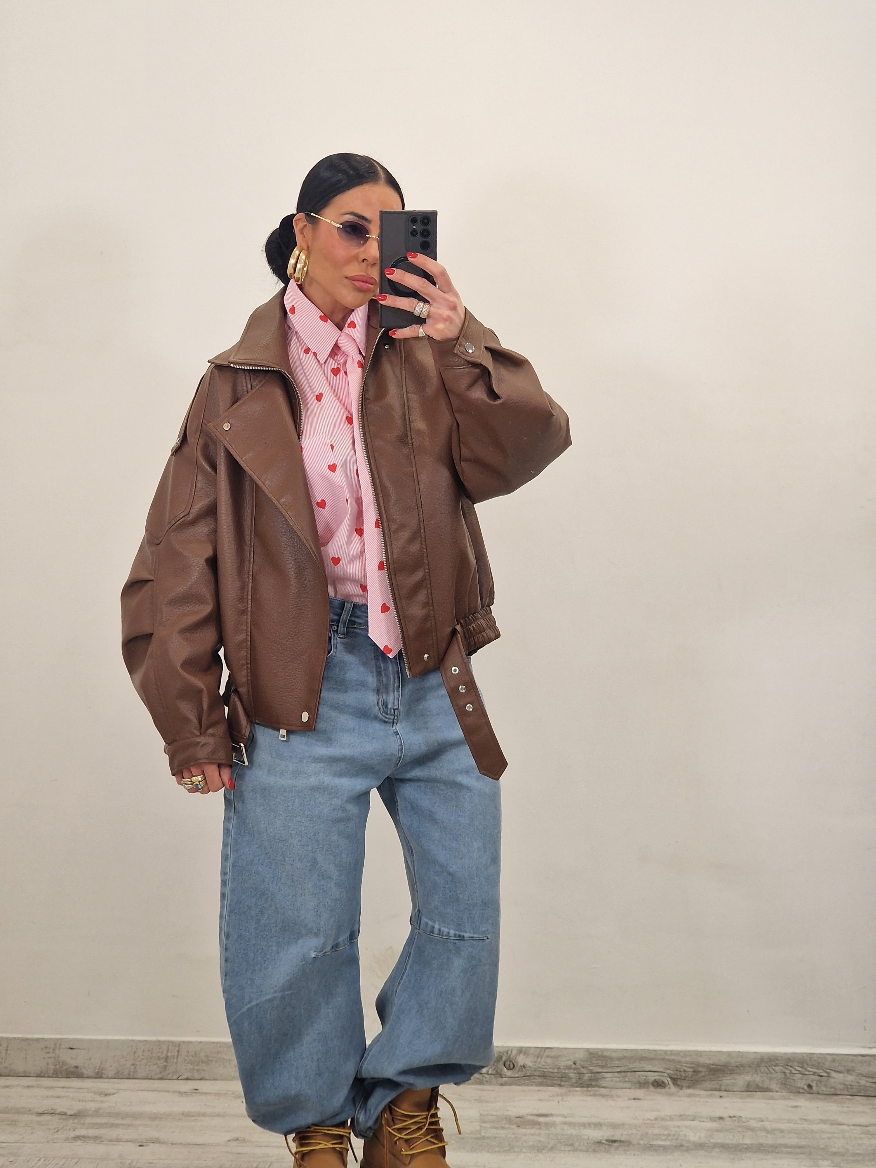 Jacket in ecopelle modello over con cintura