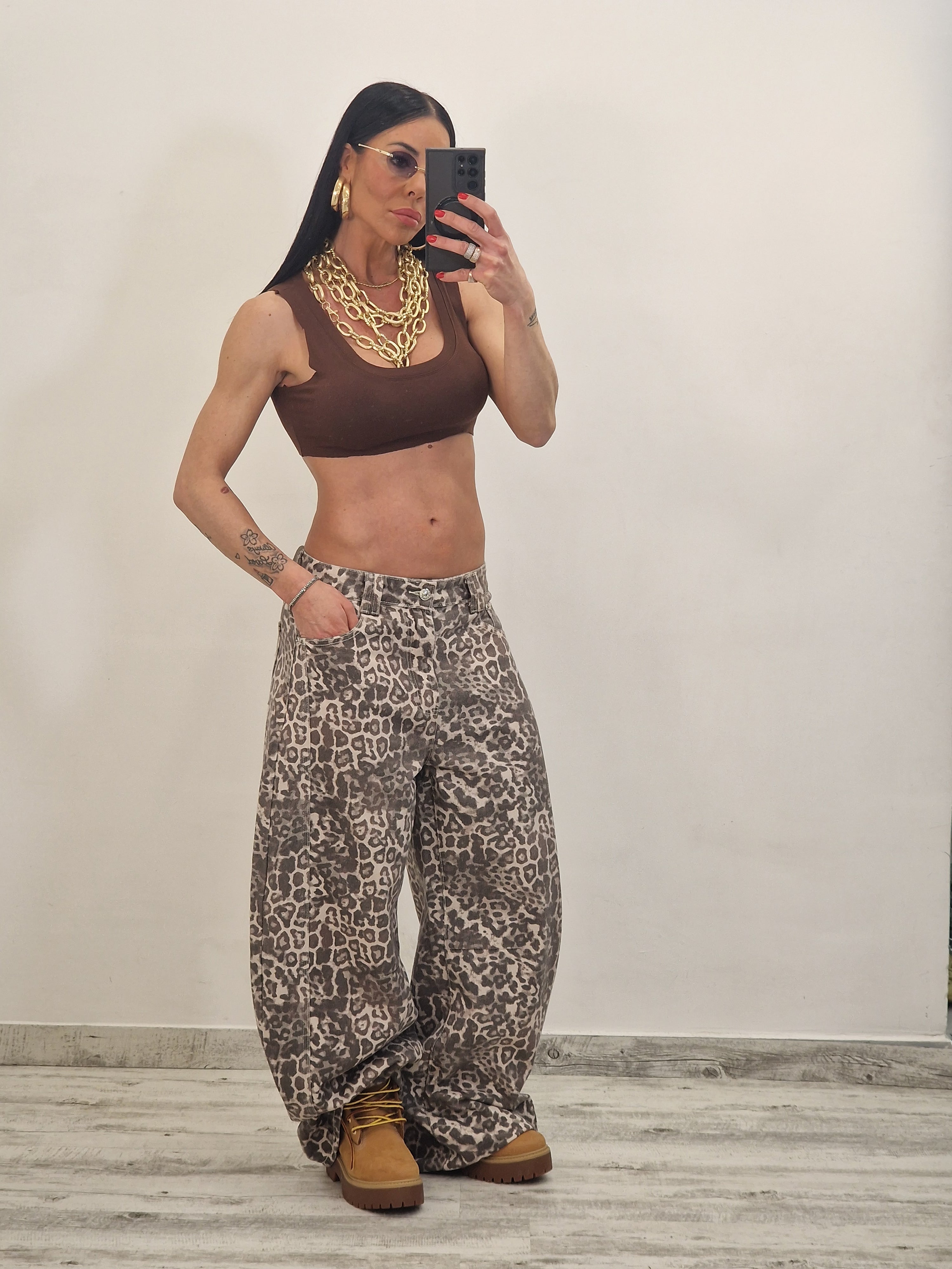 Jeans modello ballon con stampa leopardata