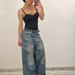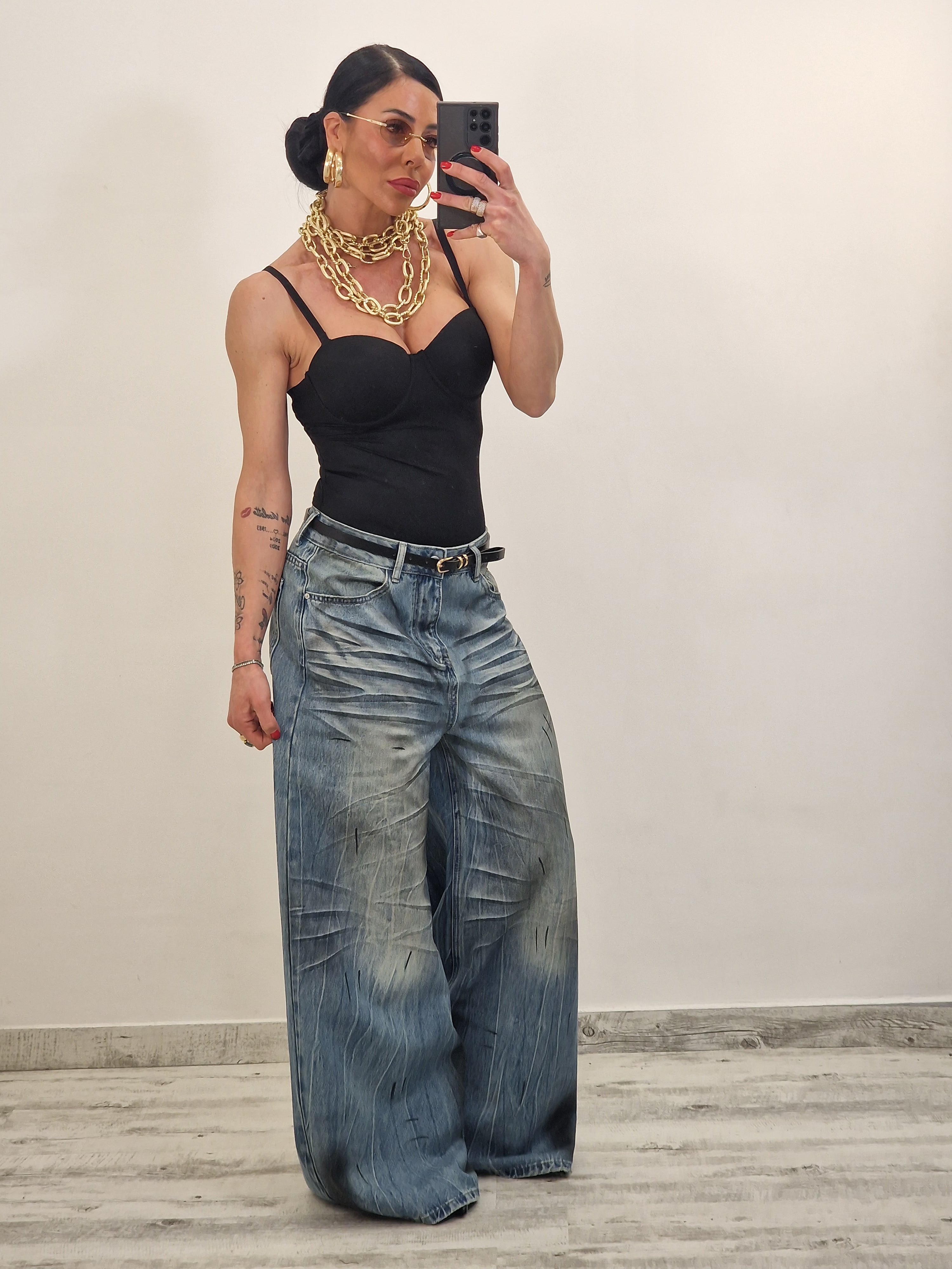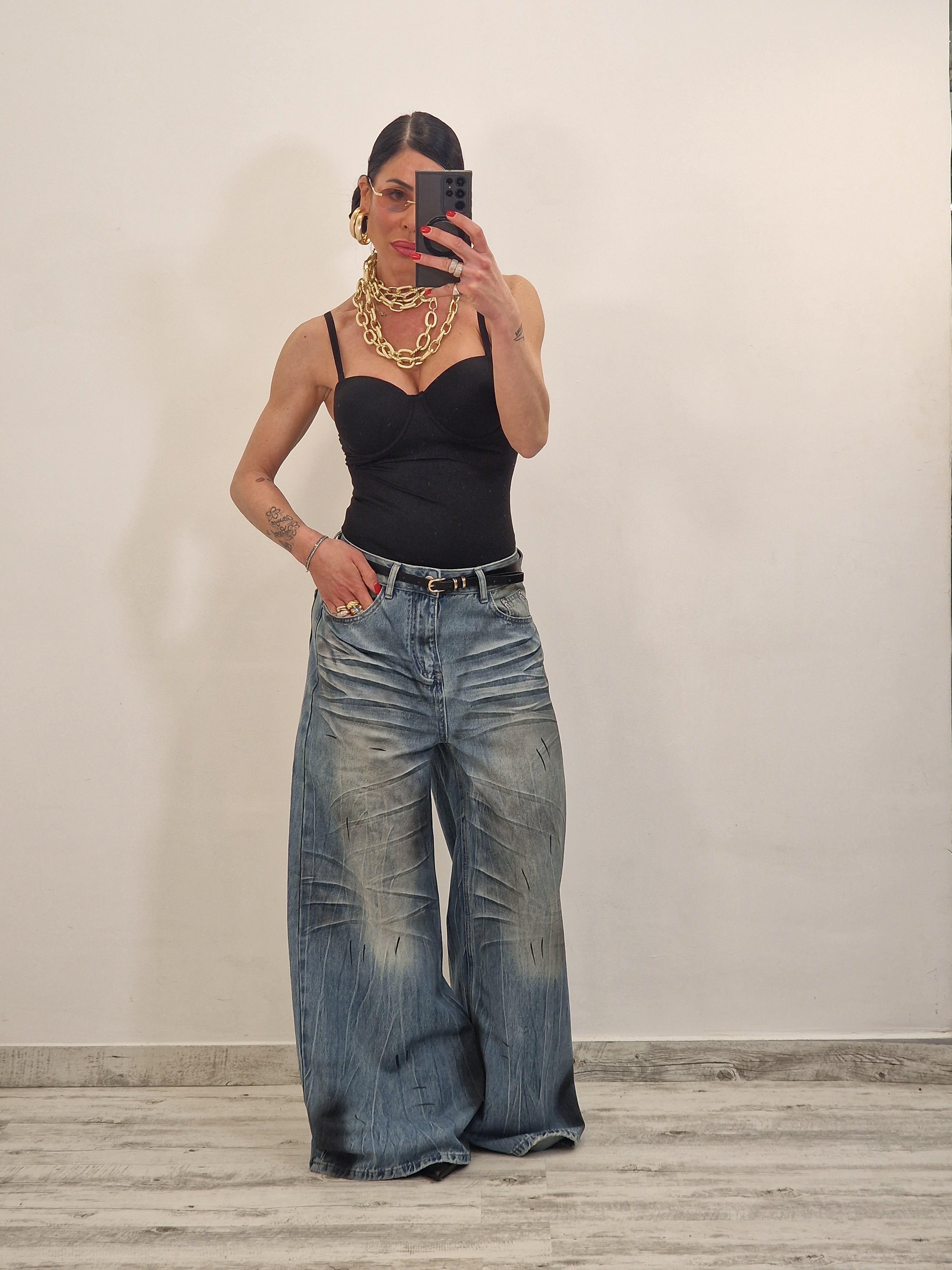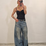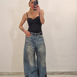Jeans palazzo gamba larga  slavato con macchie di pittura