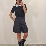 Maglia in cotone elasticizzato con colletto merlettato