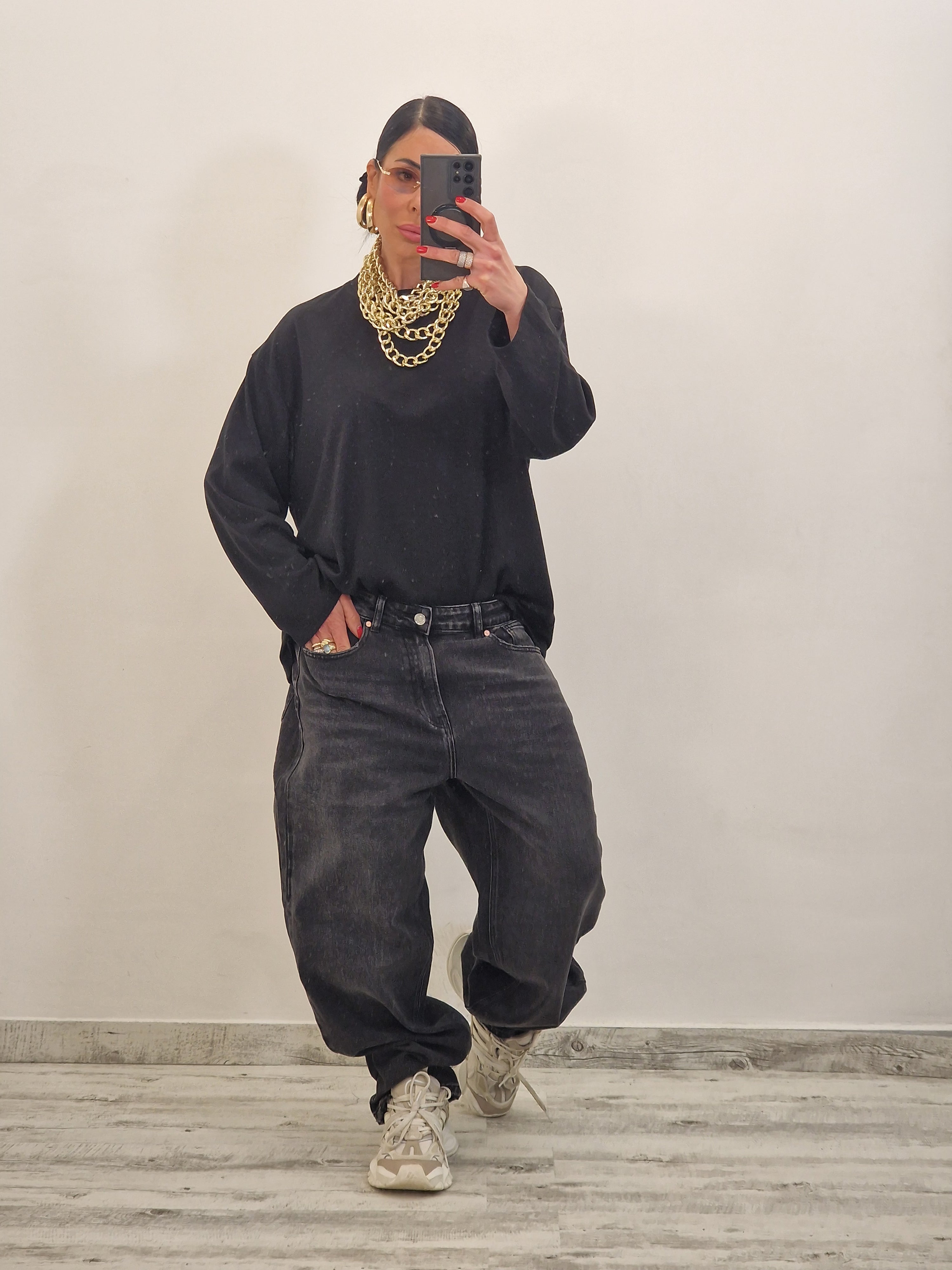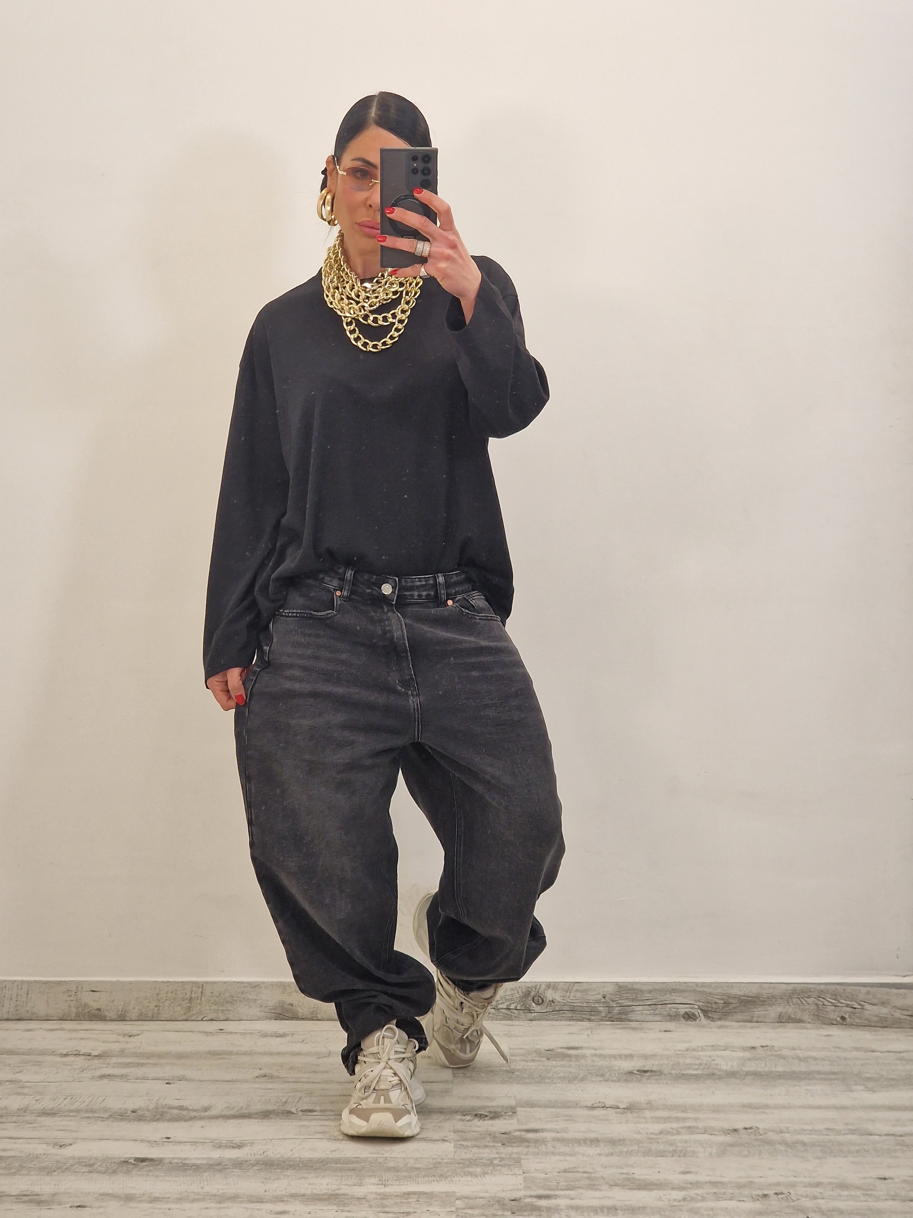 Maglia scollo tondo vestibilità over