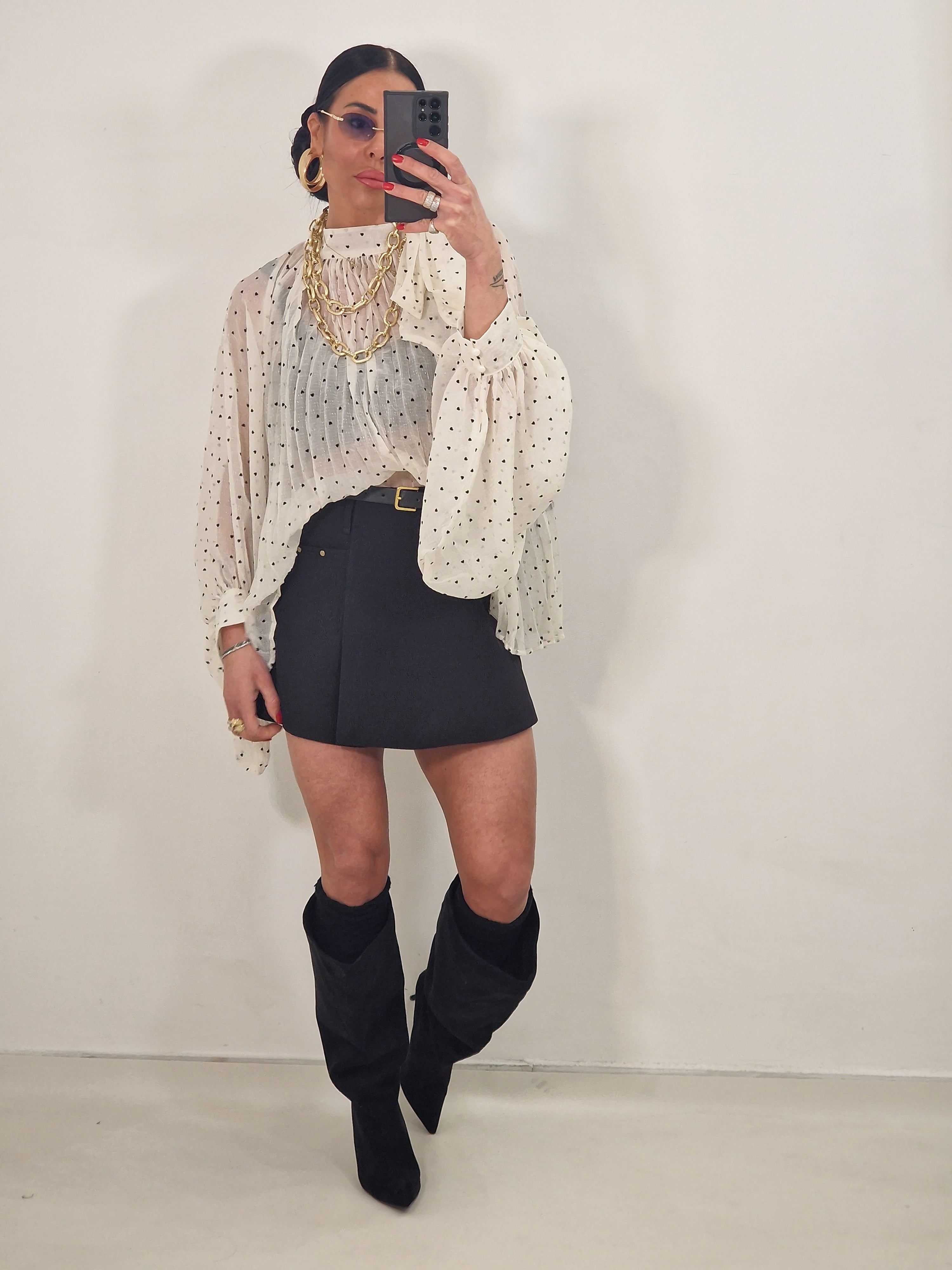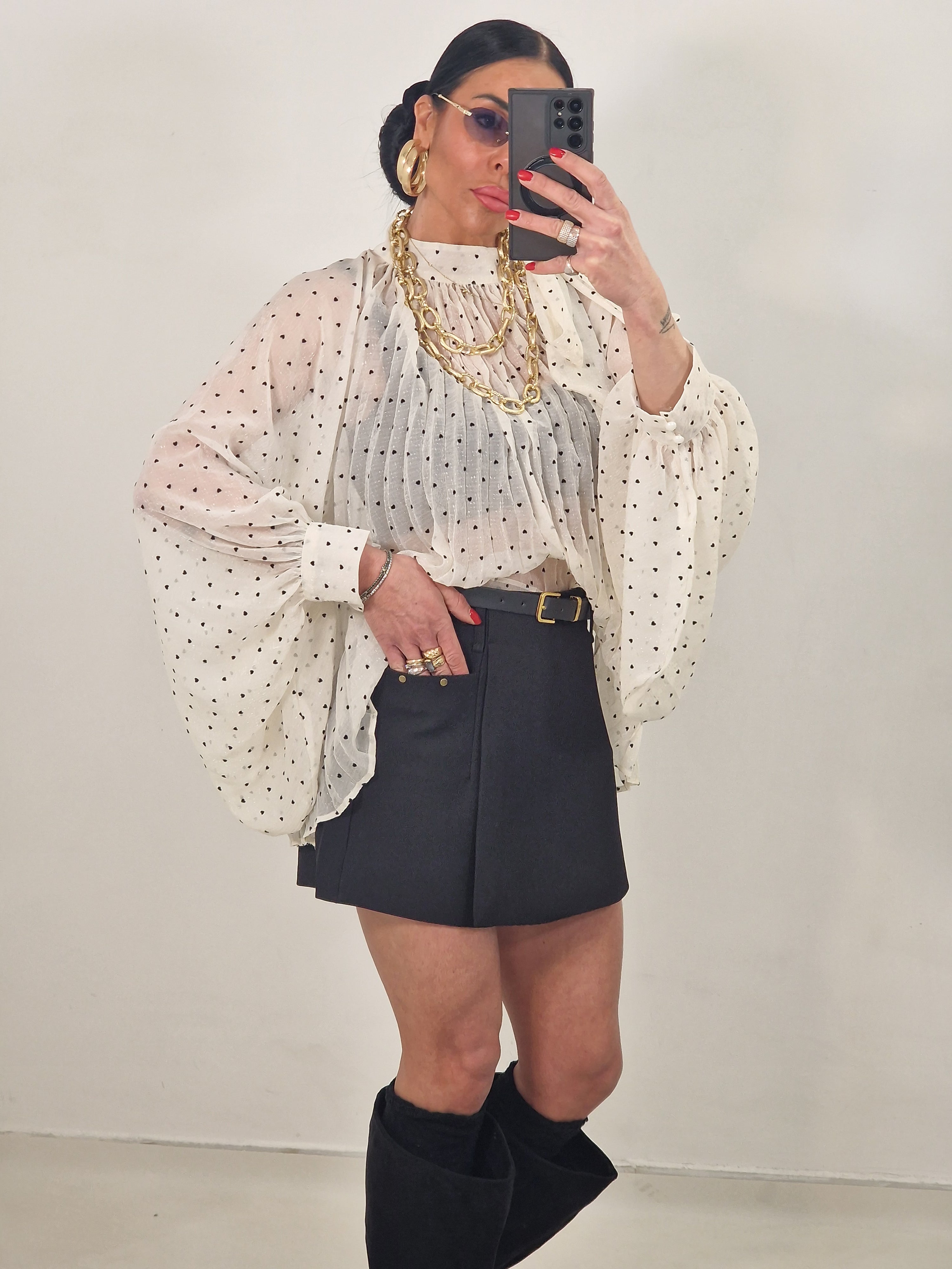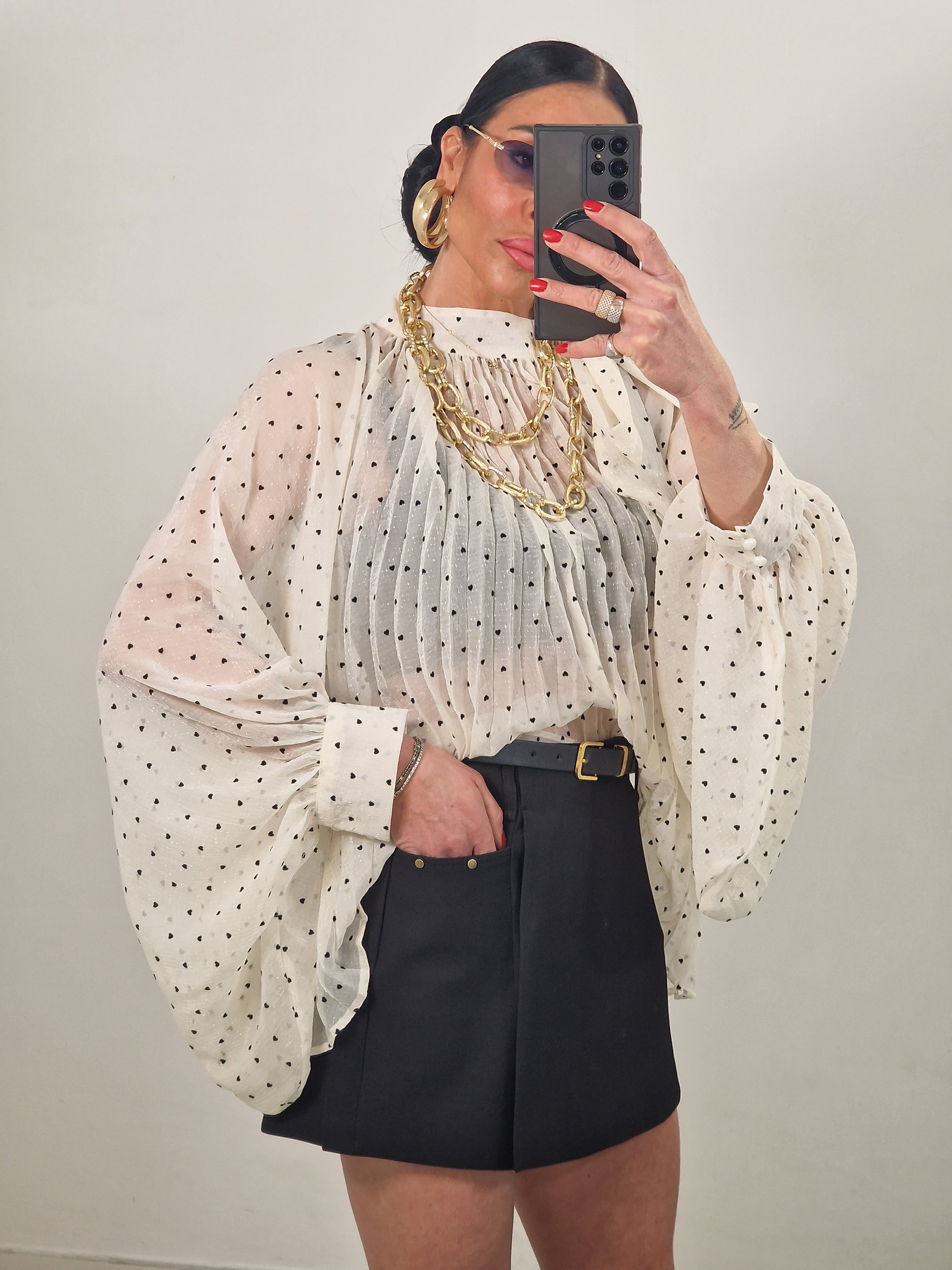 Maglia velata con stampa cuoricini