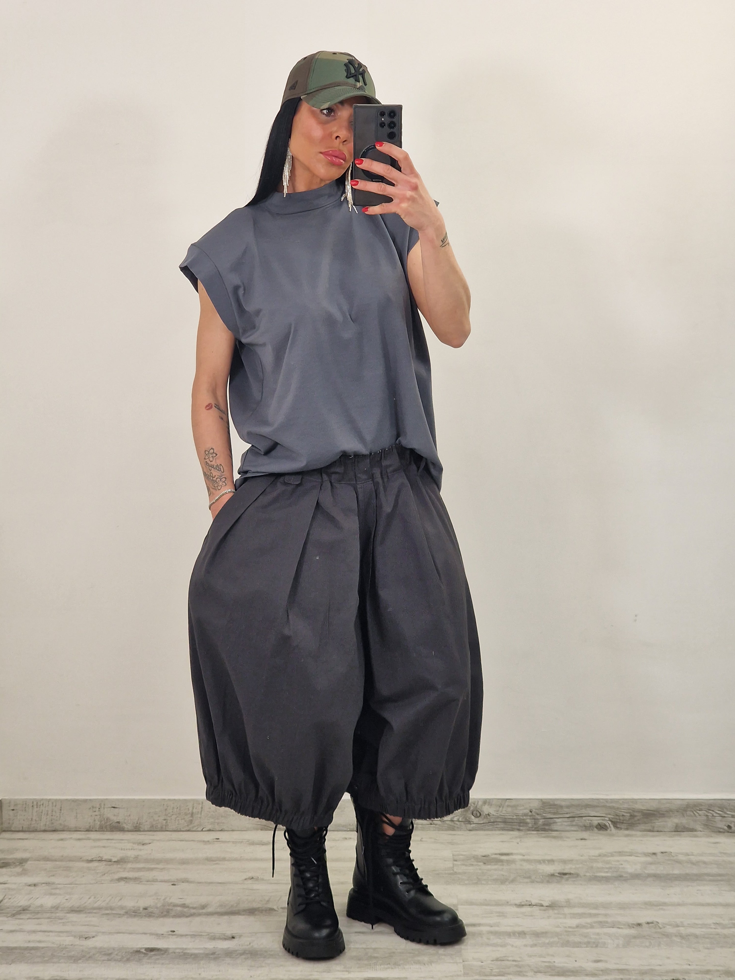 Maglia over giromanica 100% cotone con collo alto e spalline