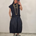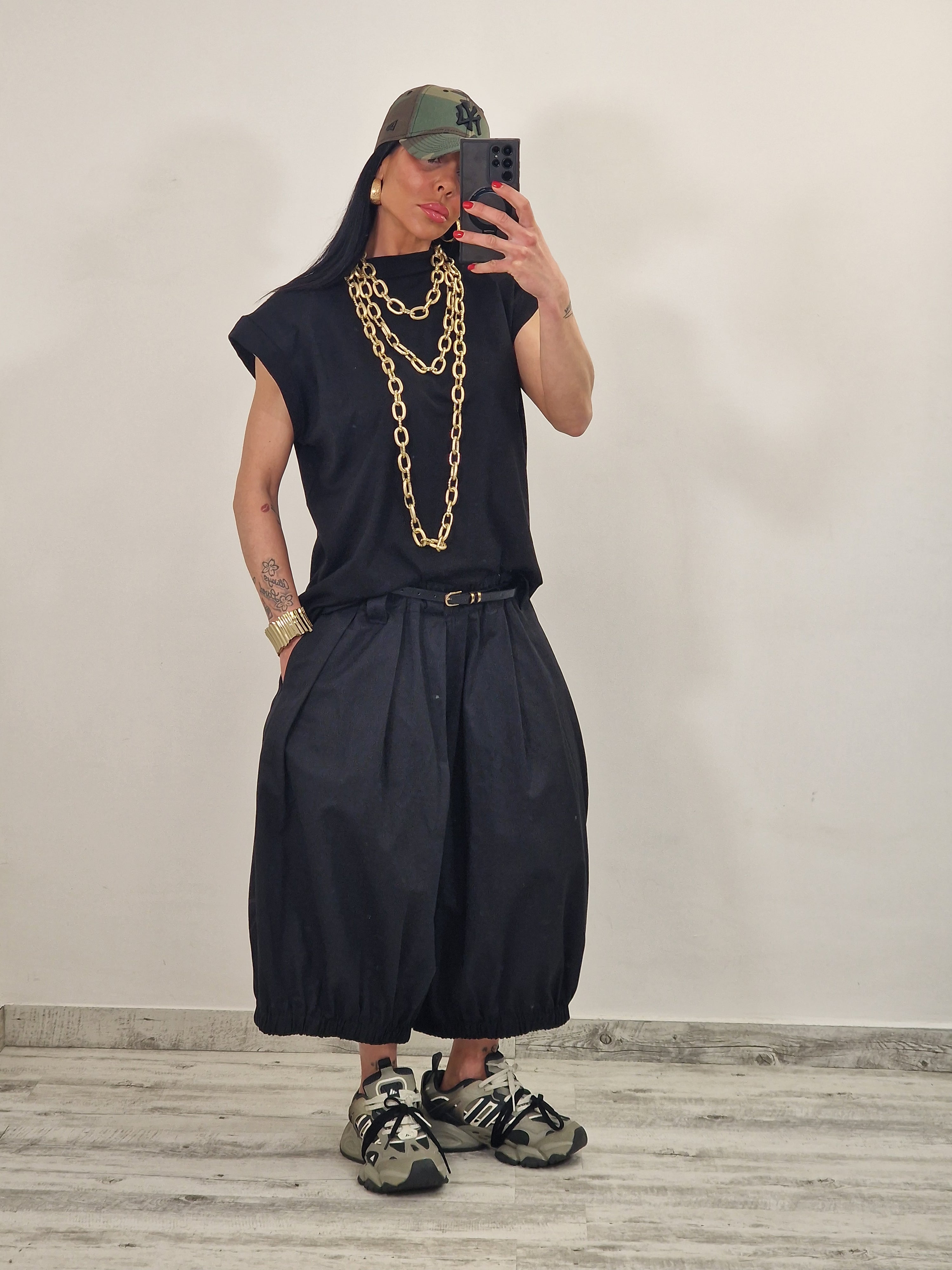 Maglia over giromanica 100% cotone con collo alto e spalline