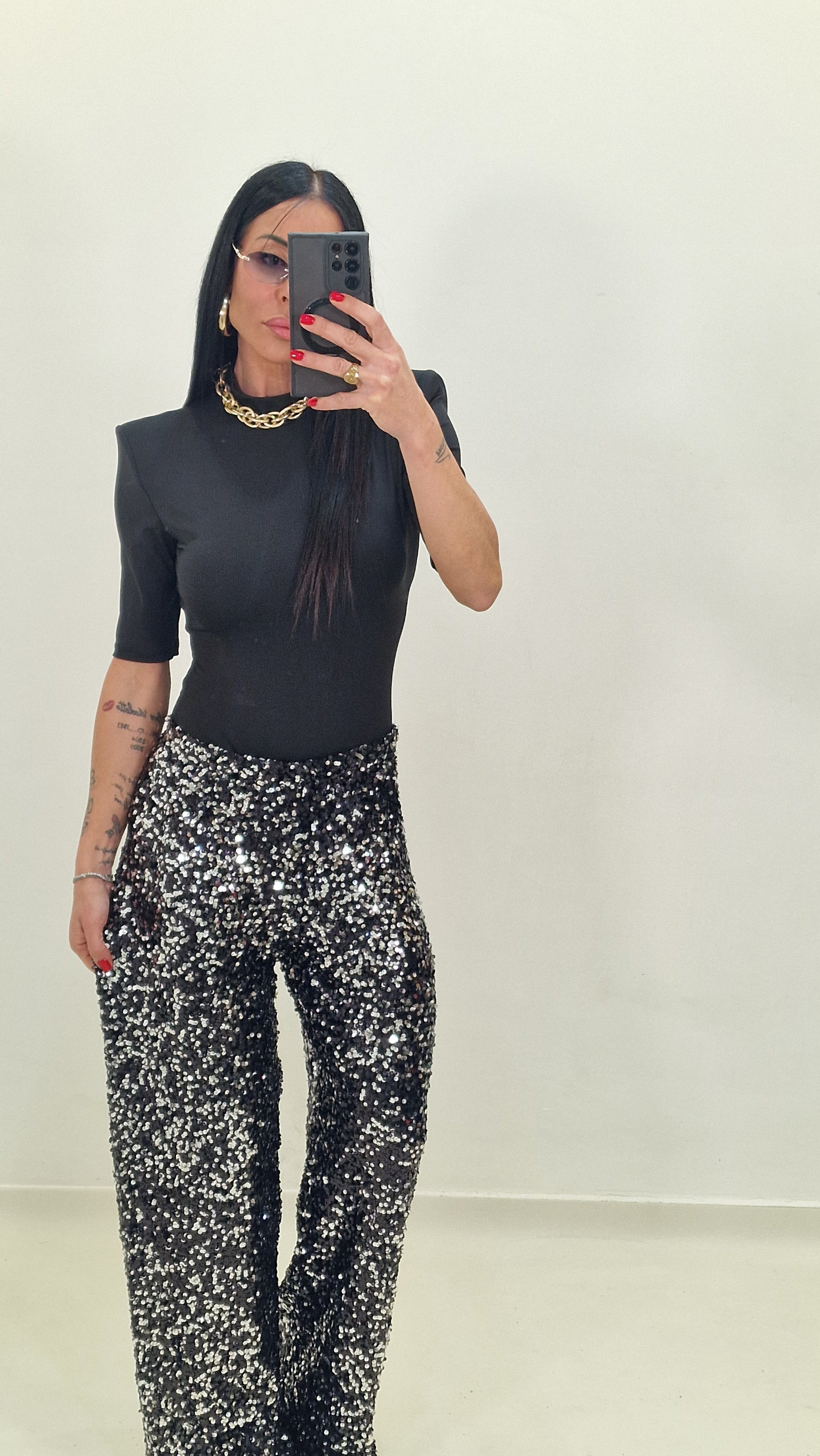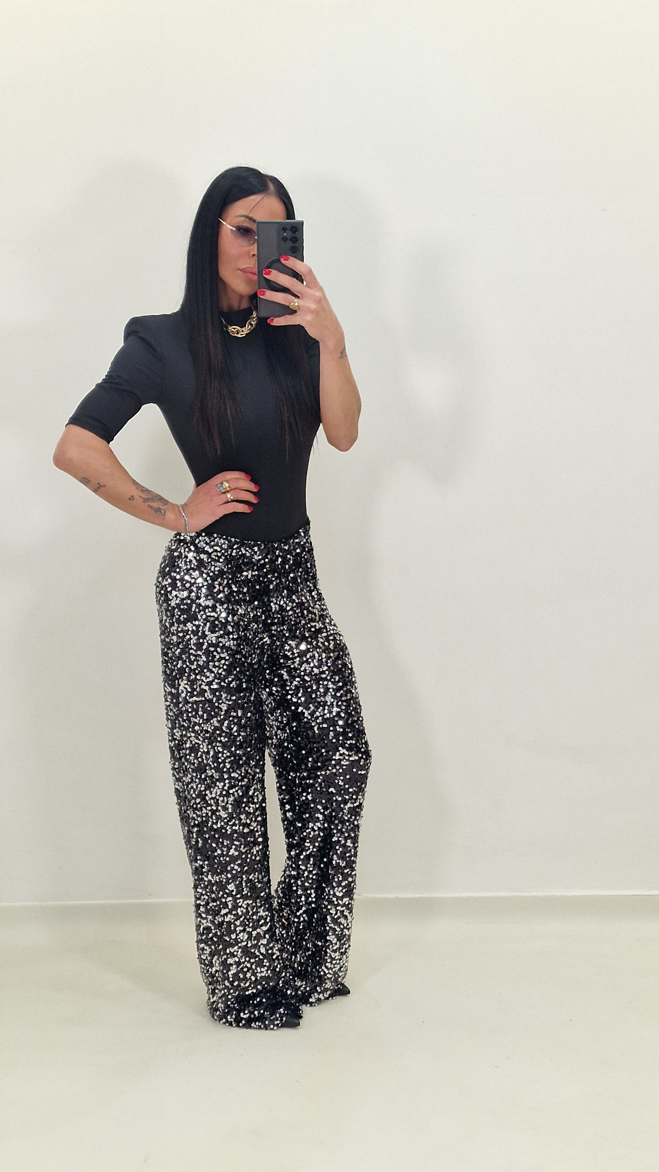 Pantalone con paillettes elasticizzato con elastico in vita