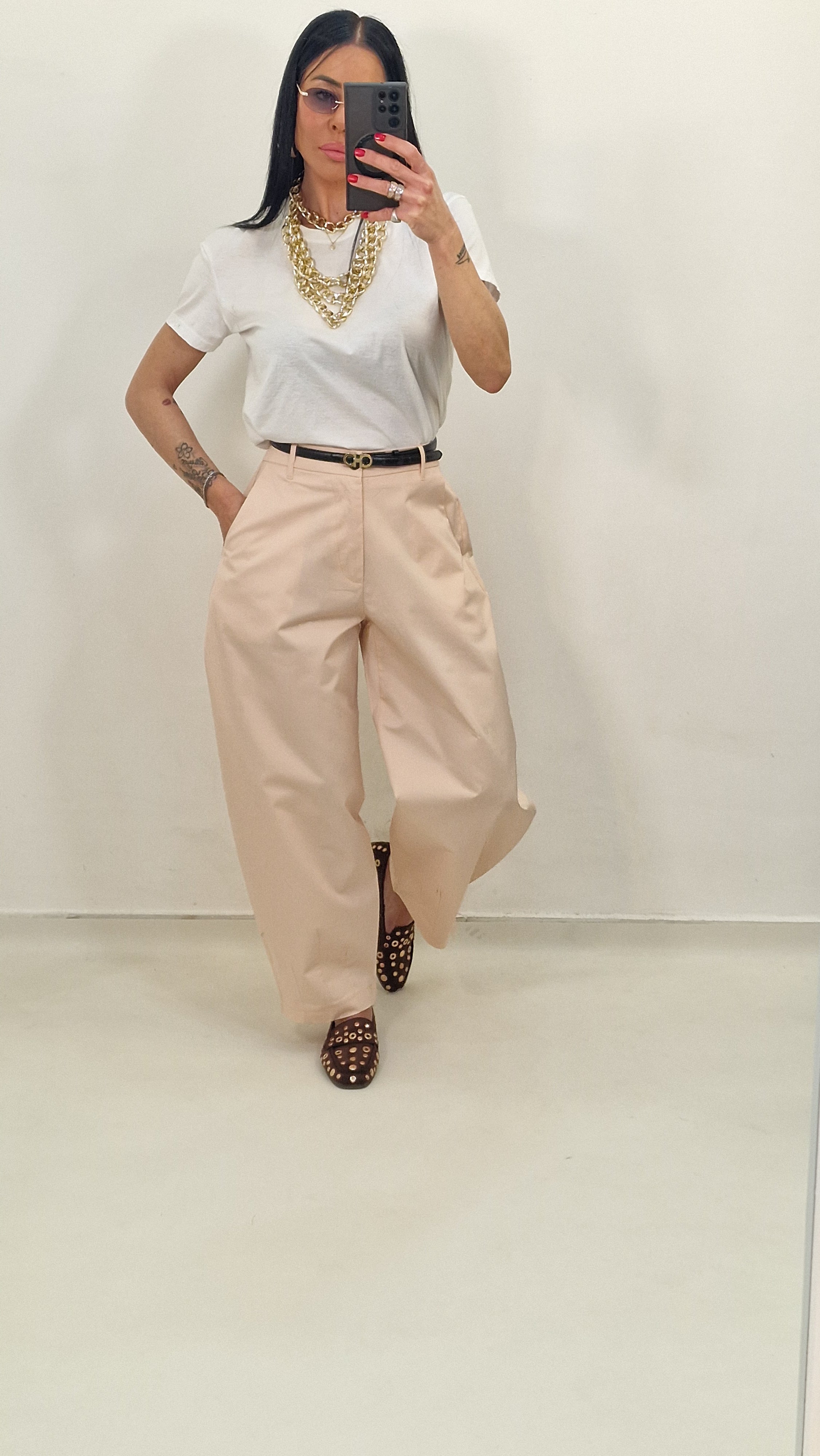 Pantalone morbido con bottone ed elastico