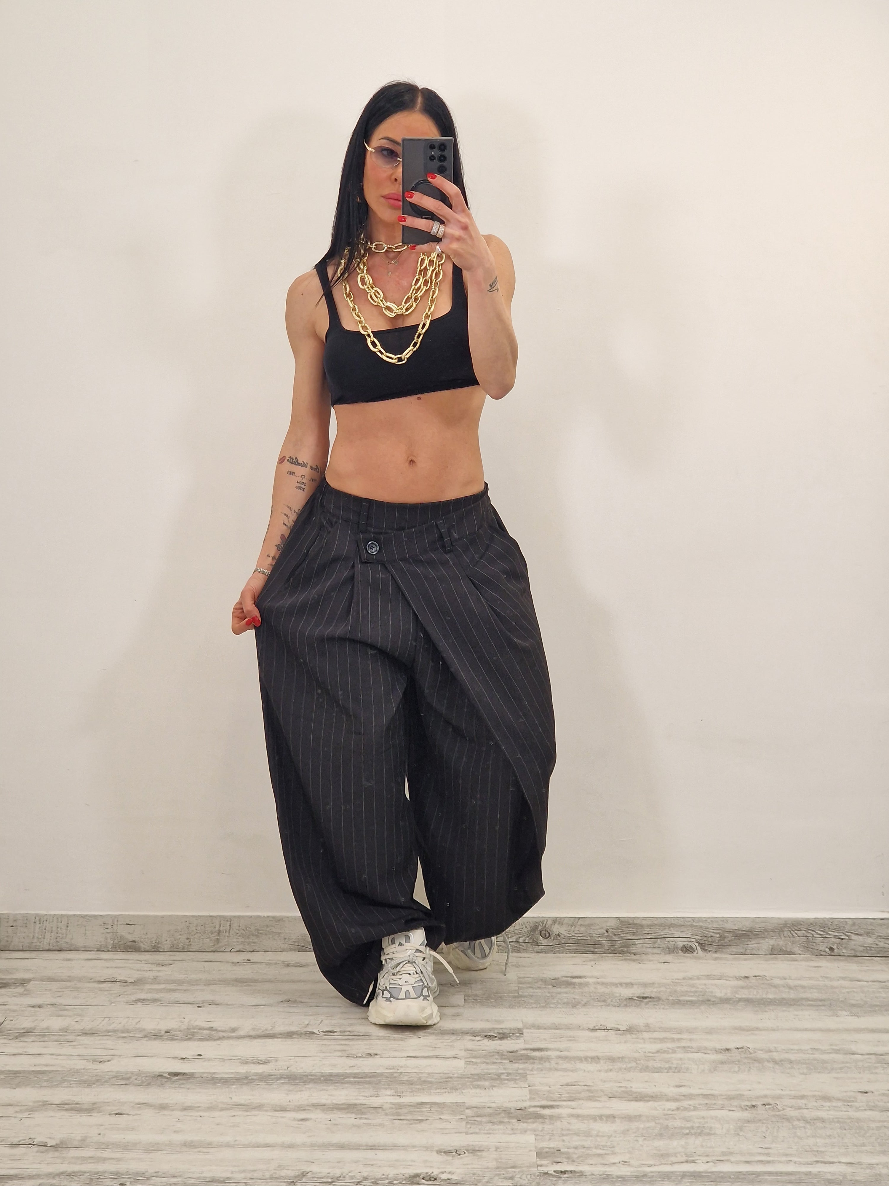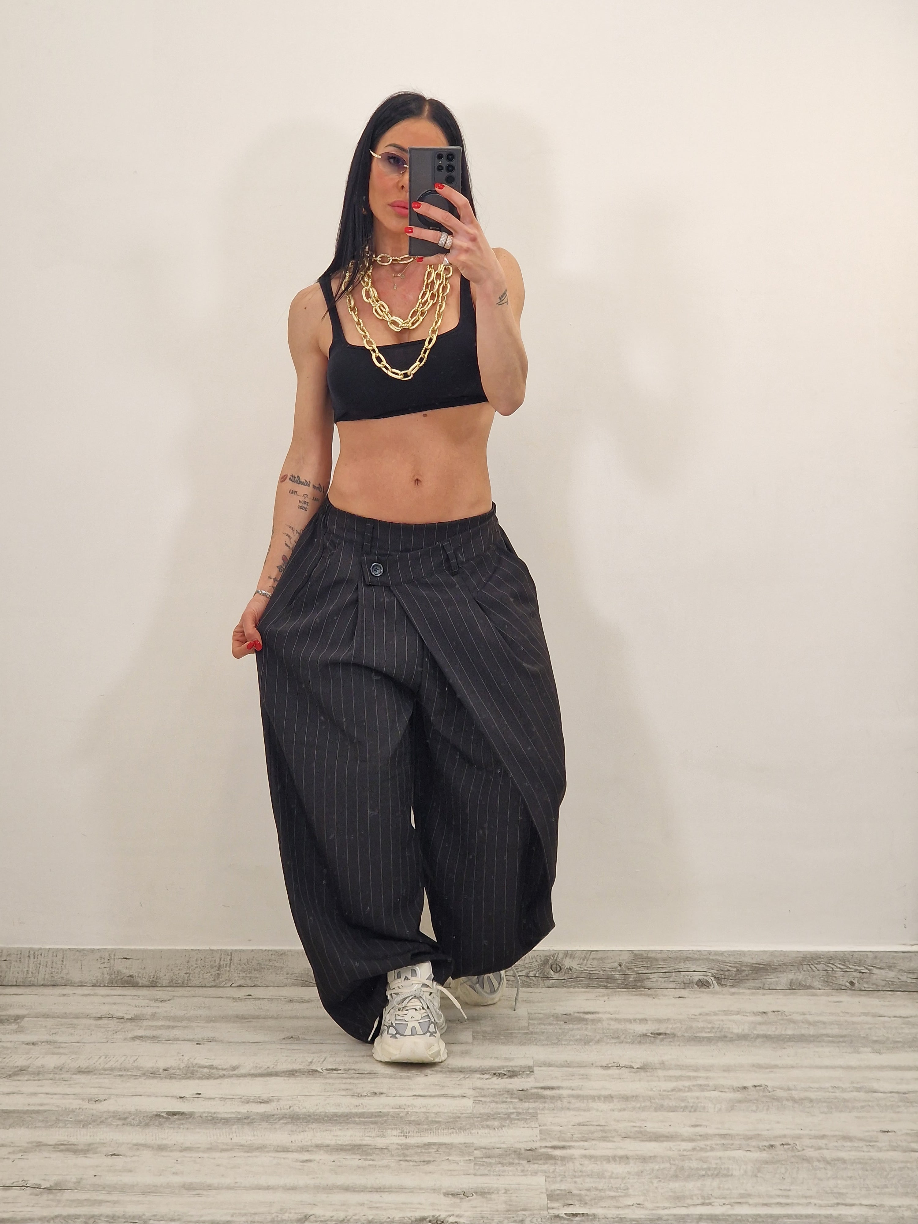 Pantalone gessato con doppia abbottonatura