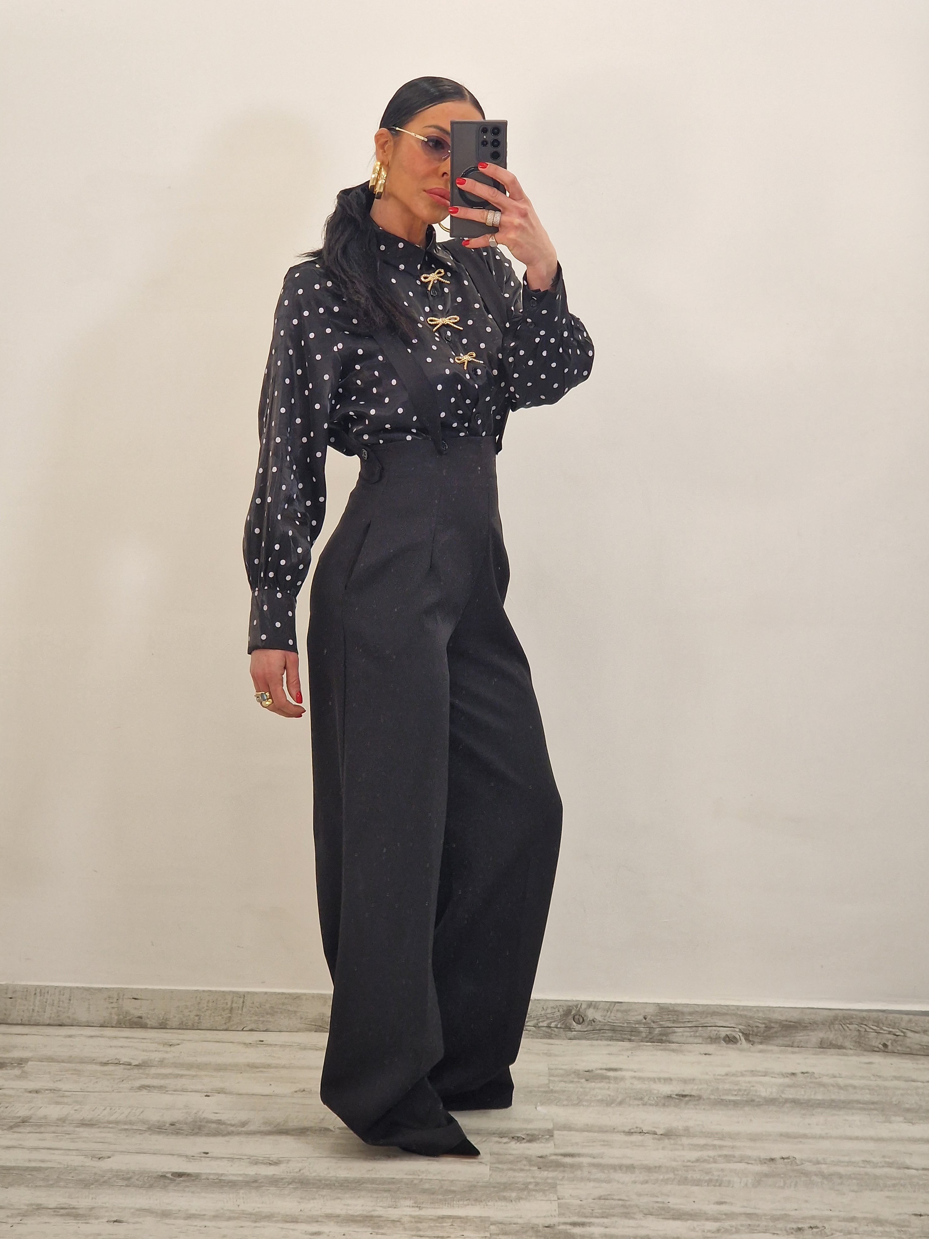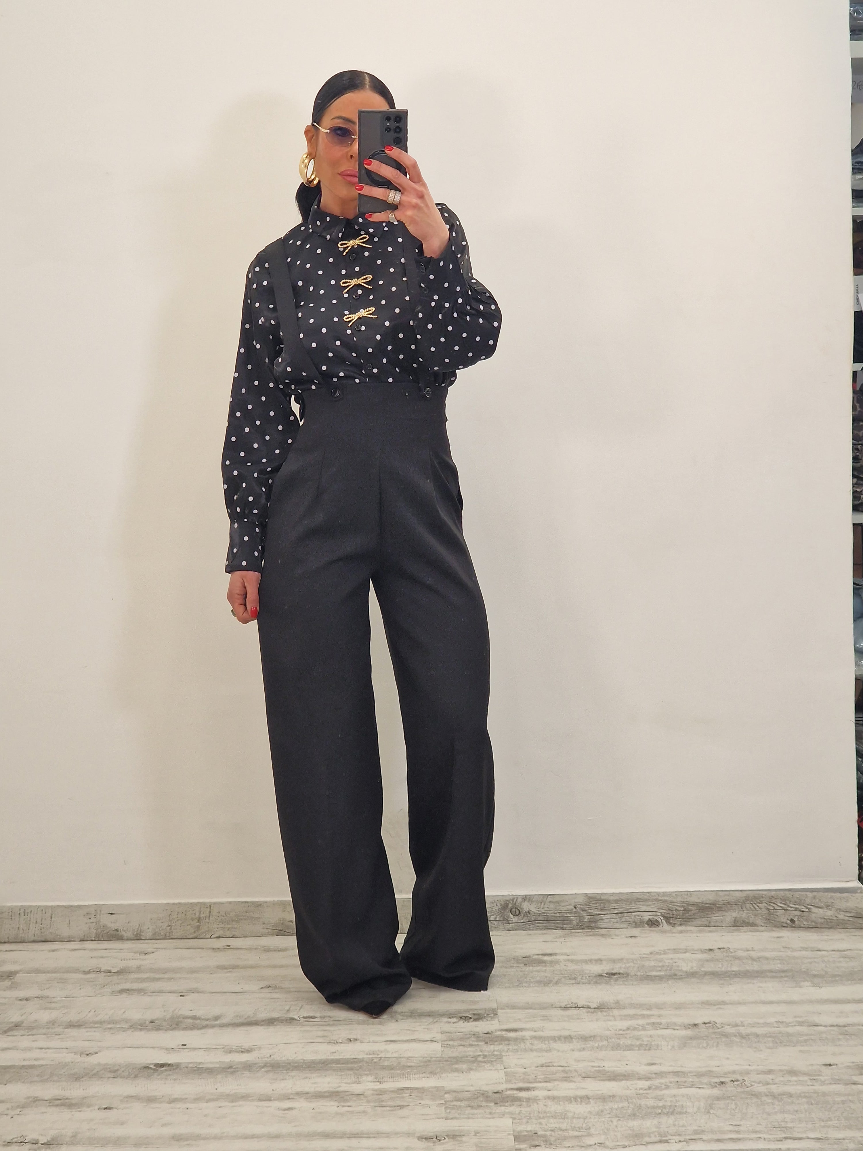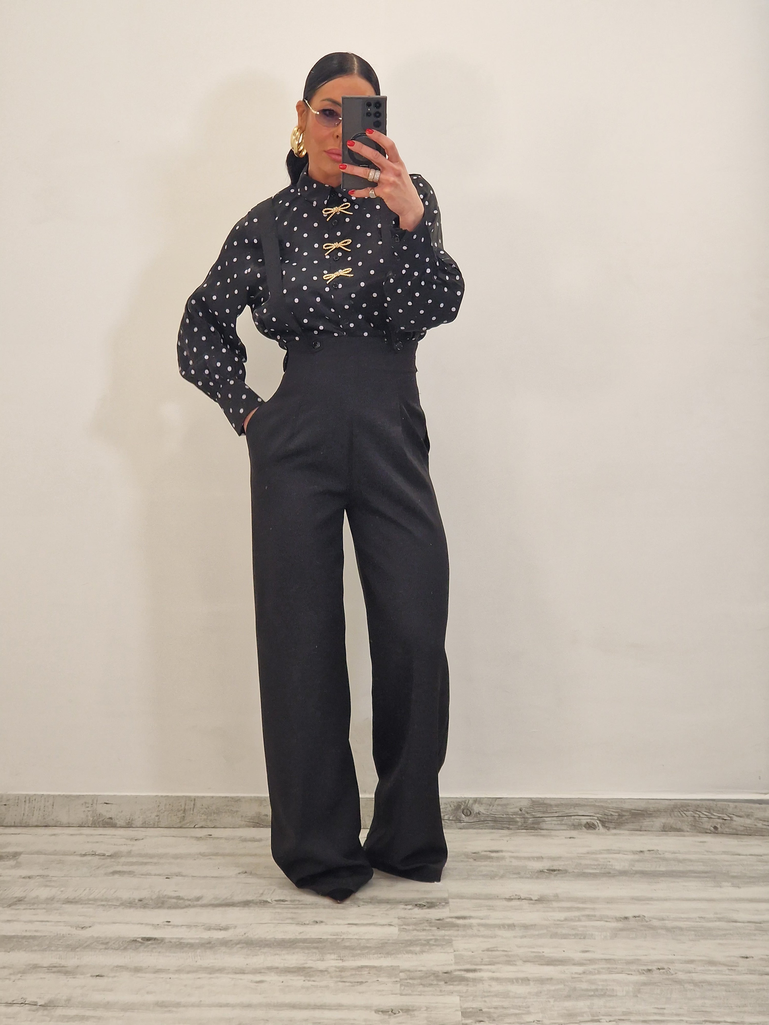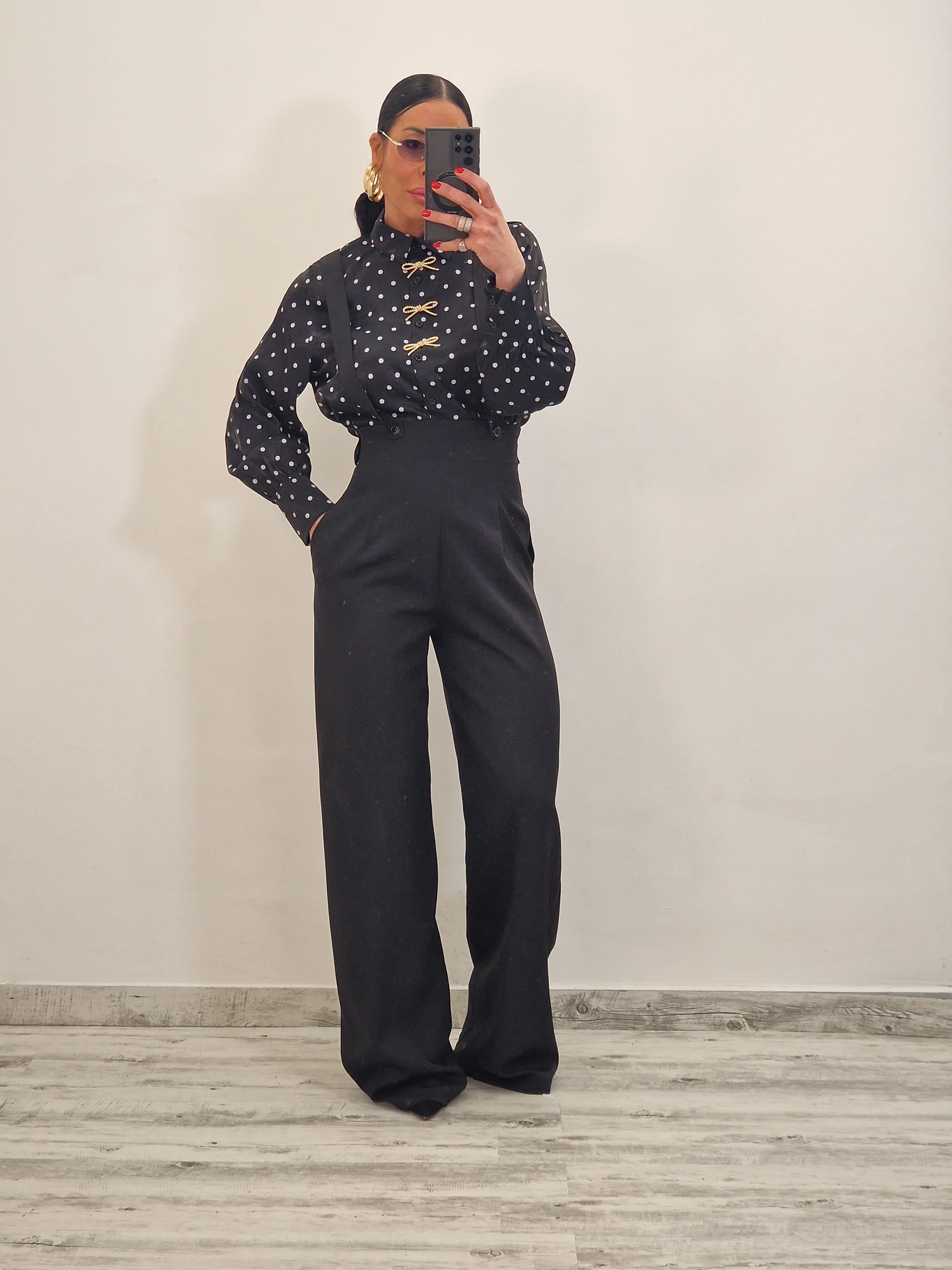 Pantalone a palazzo con bretelle