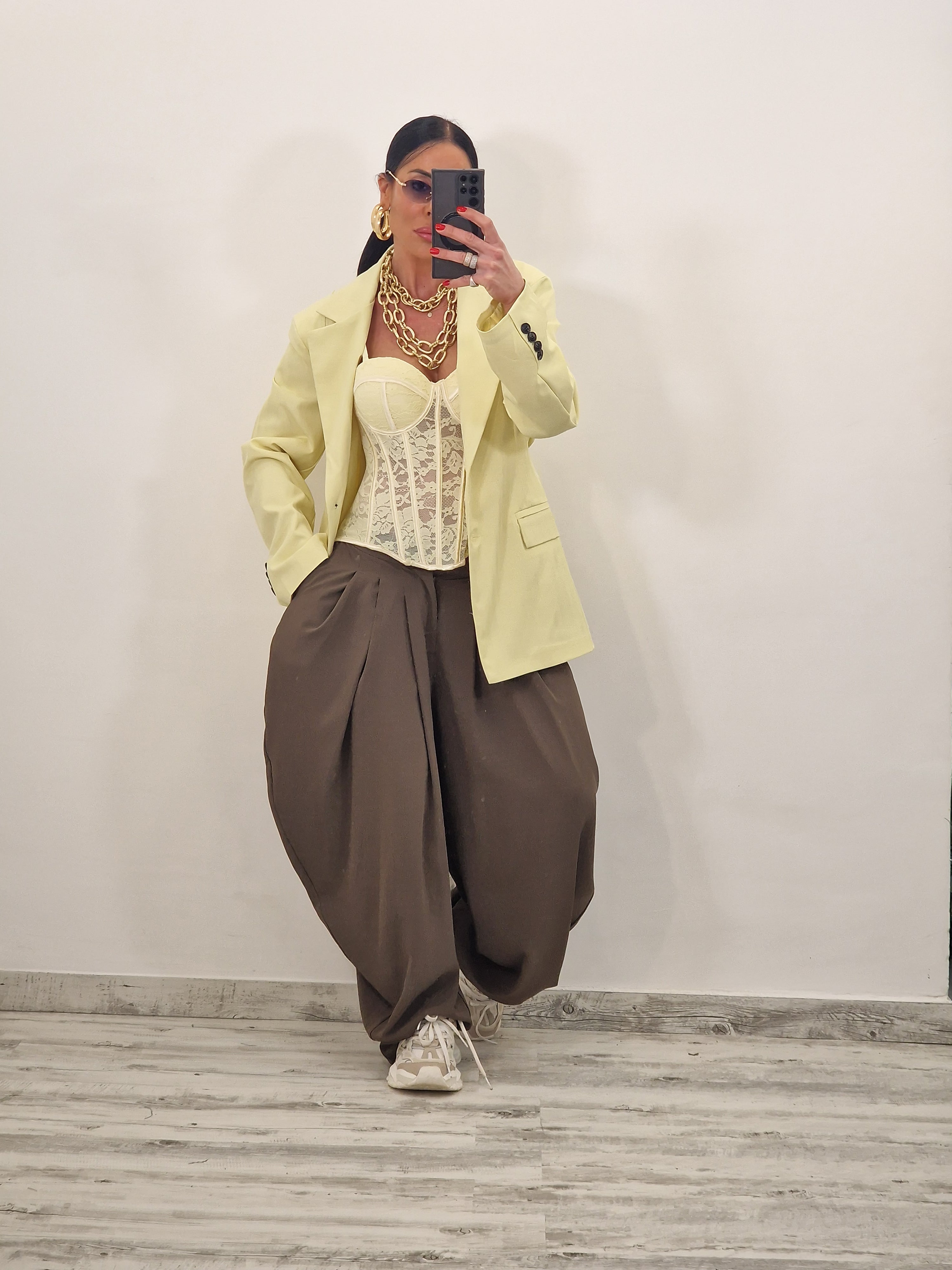 Pantalone morbido con pence e tasche modello ballon