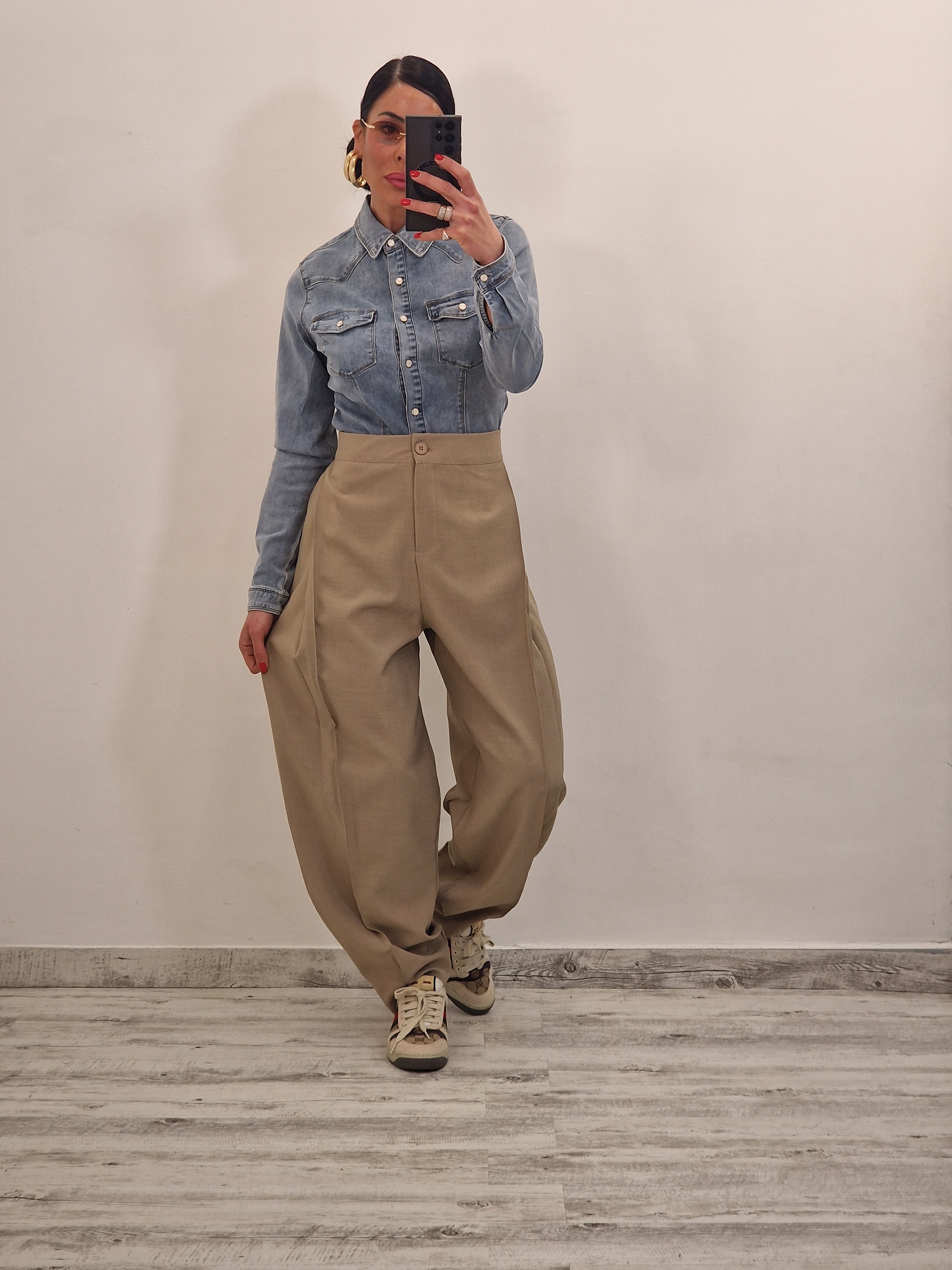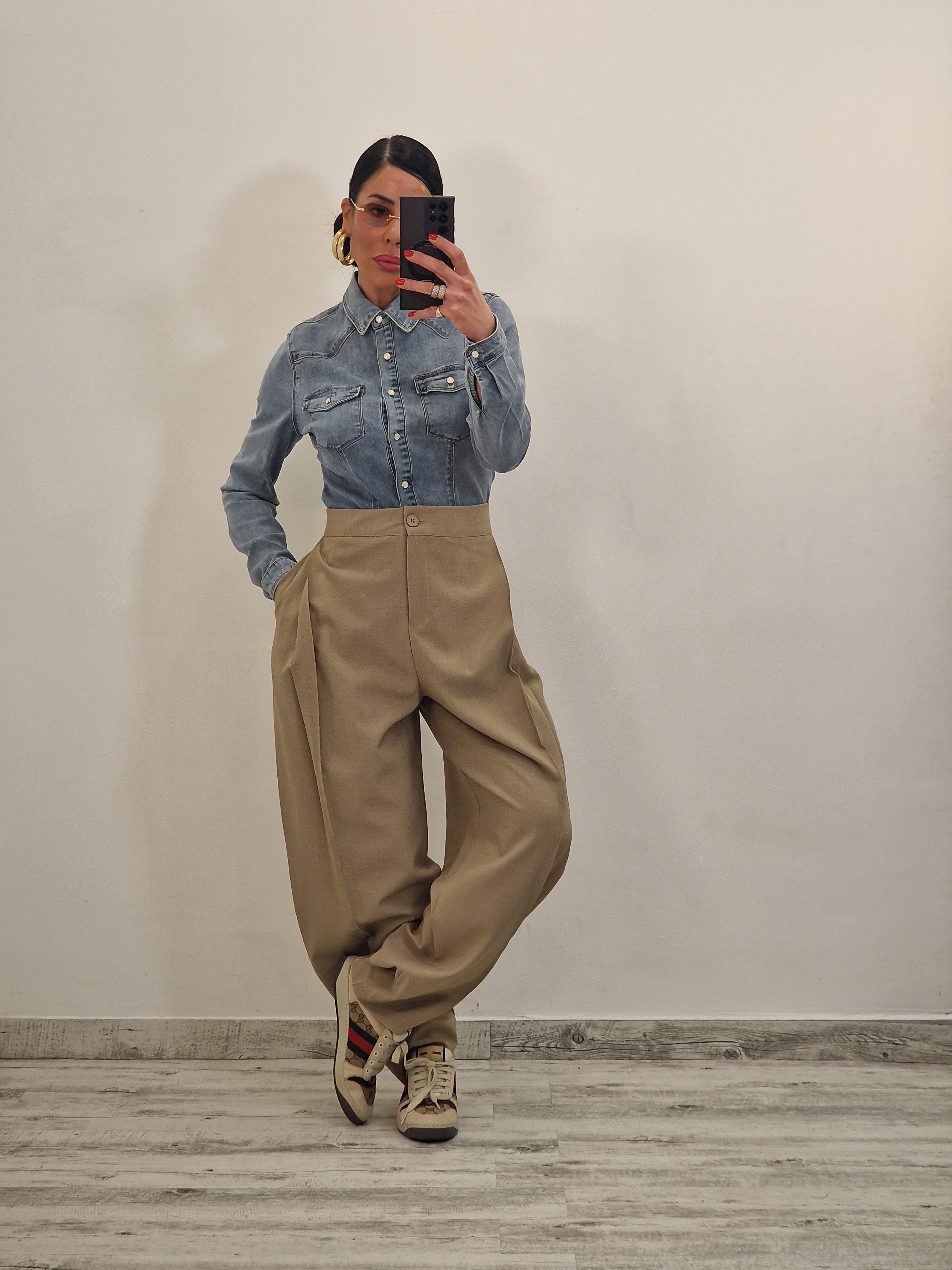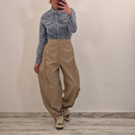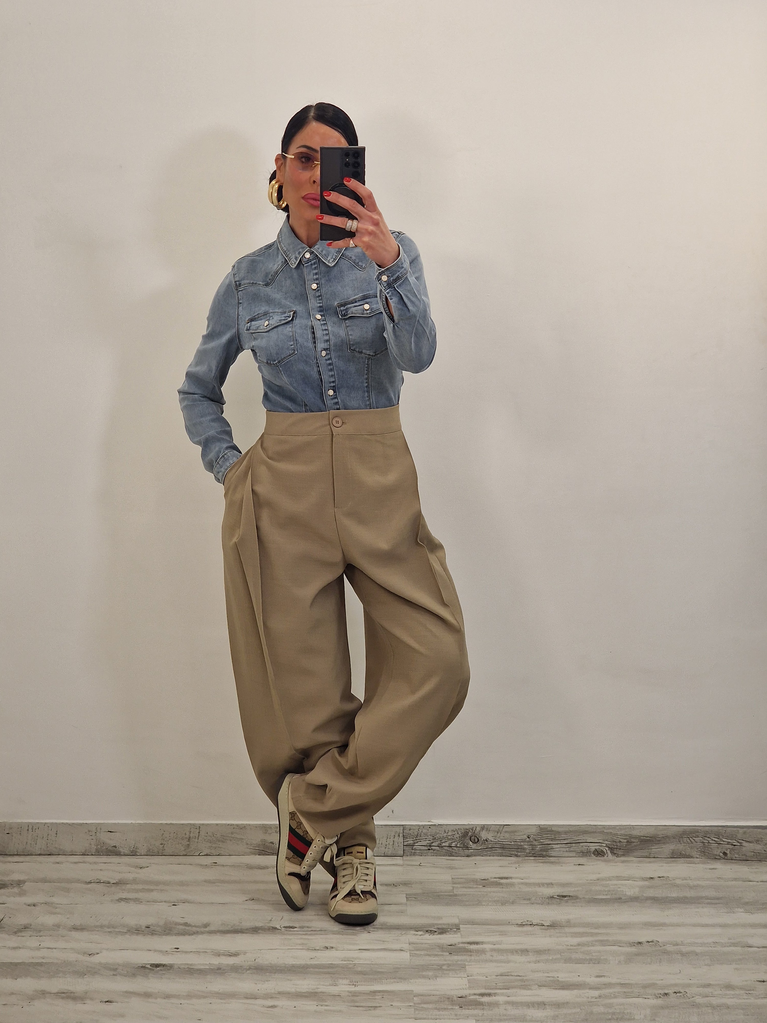 Pantalone morbido con balza lunga, tasche davanti e taschini finti dietro