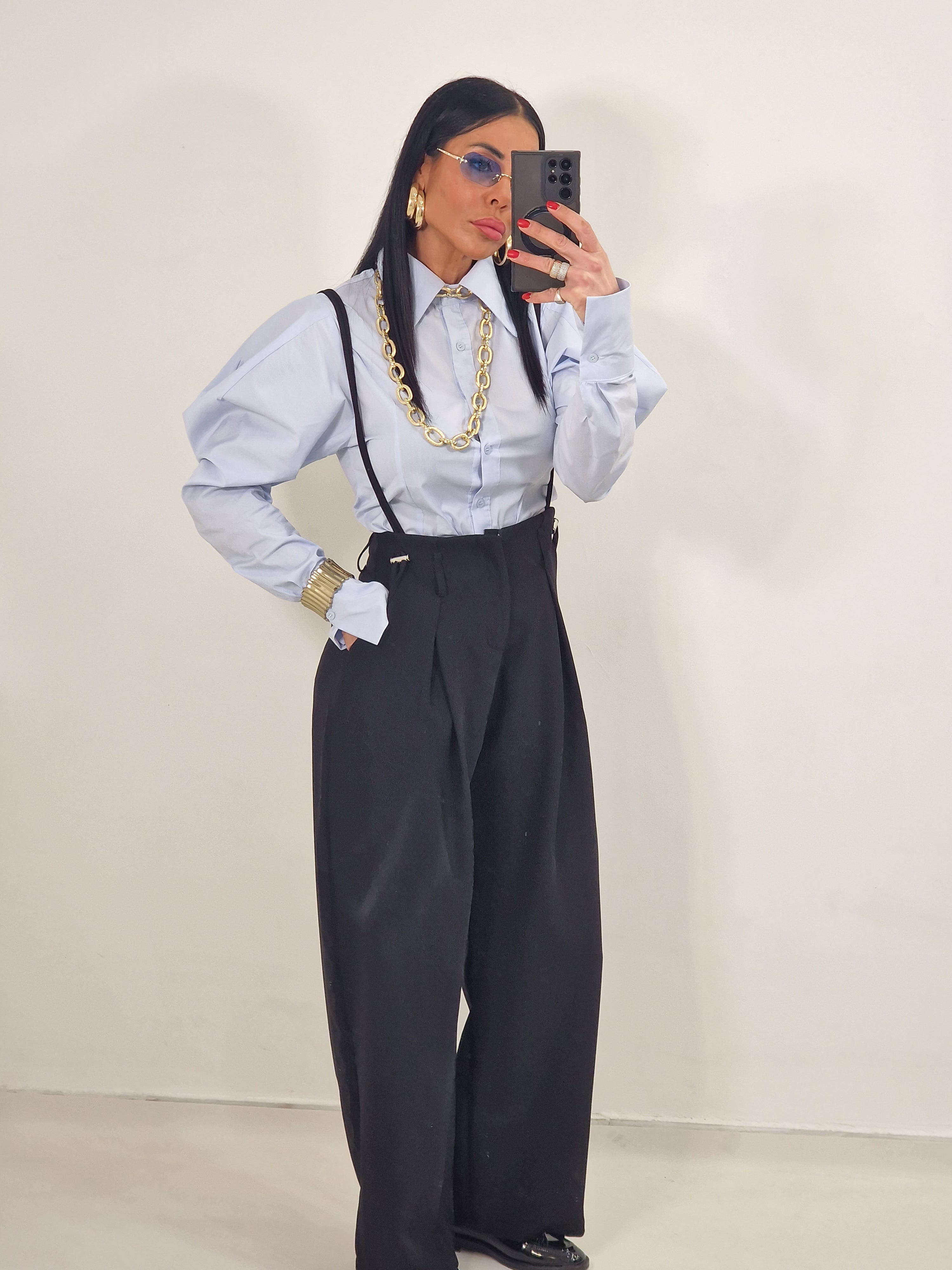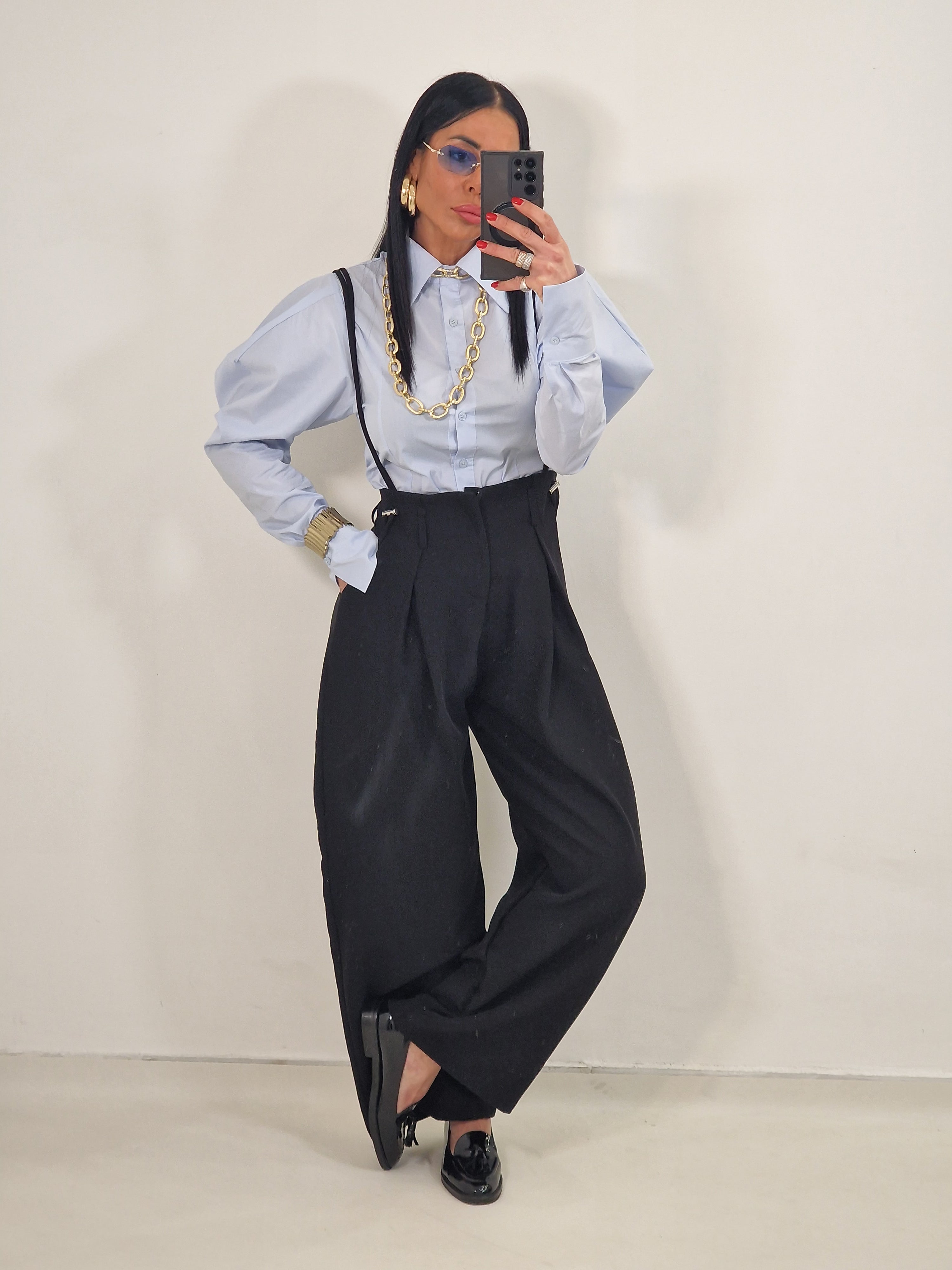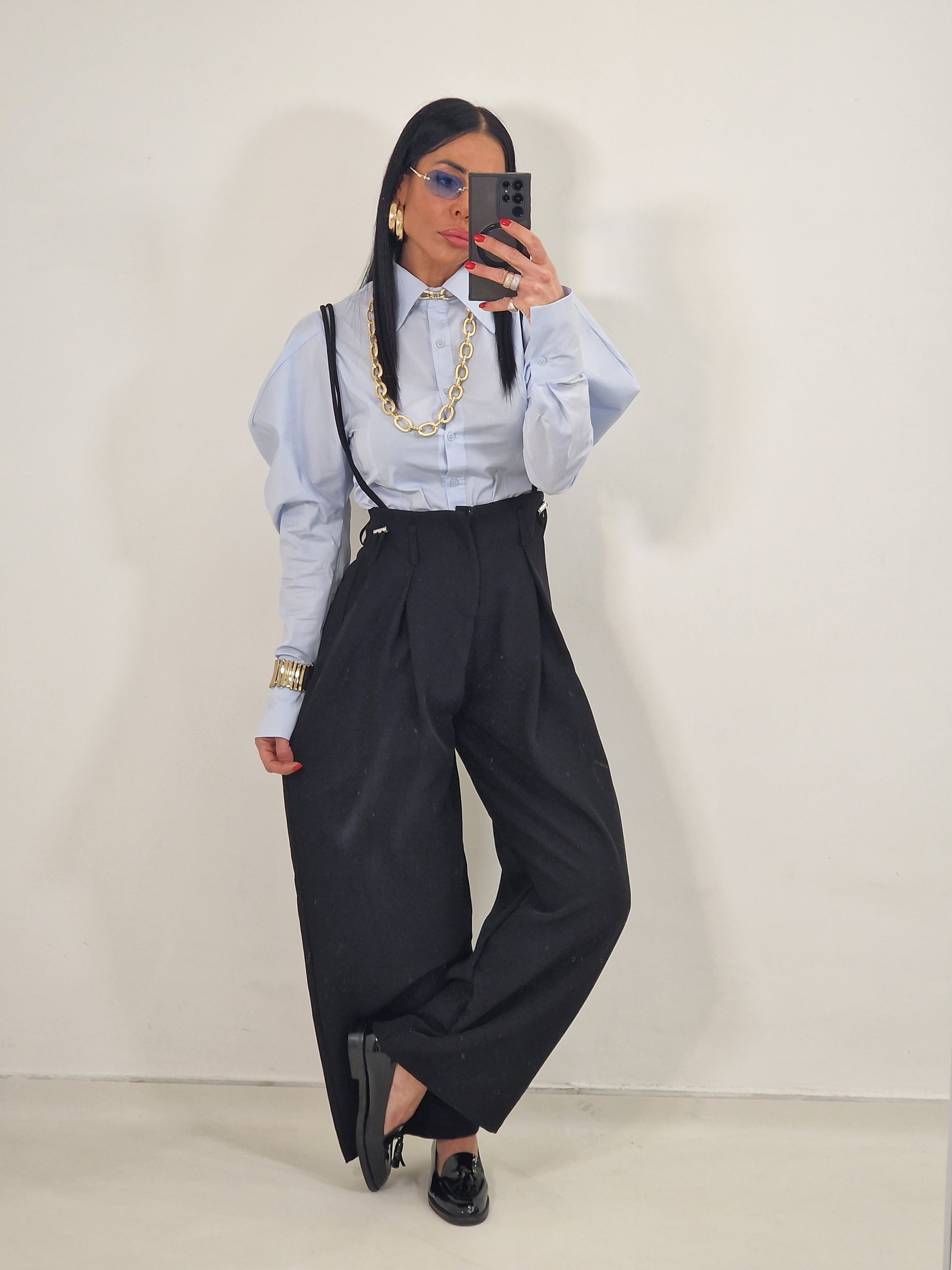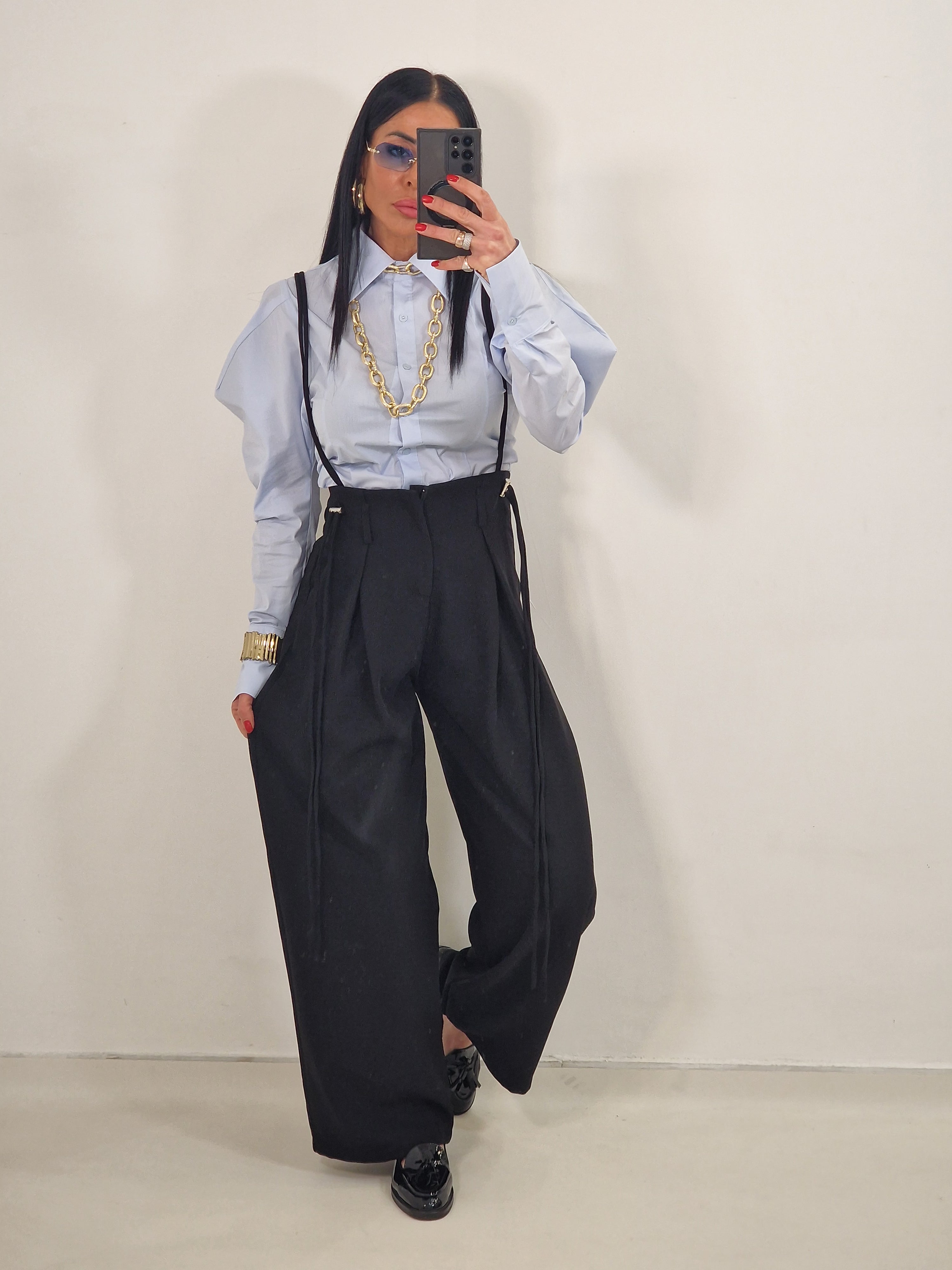 Pantatuta con elastico in vita e tasche laterali e bretelle