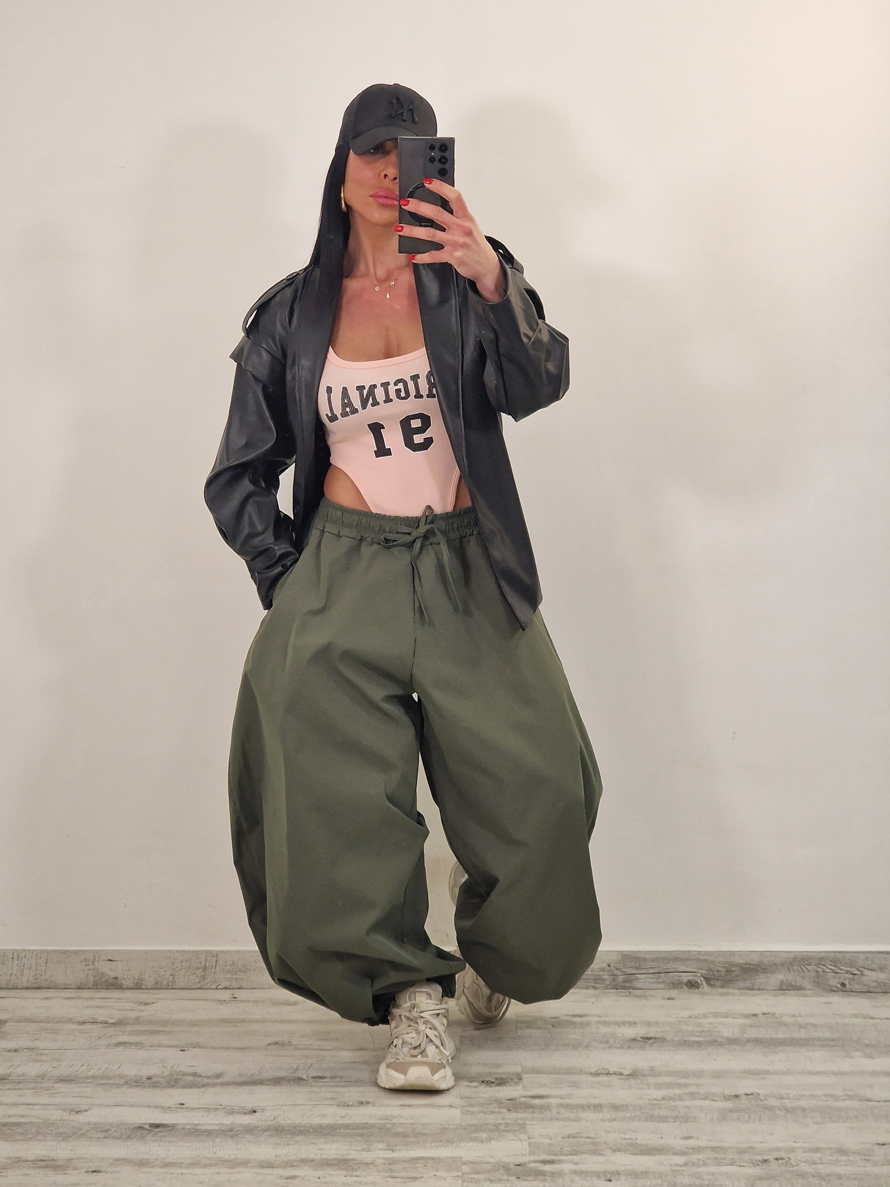 Pantalone modello ballon con elastico in vita e sulle caviglie