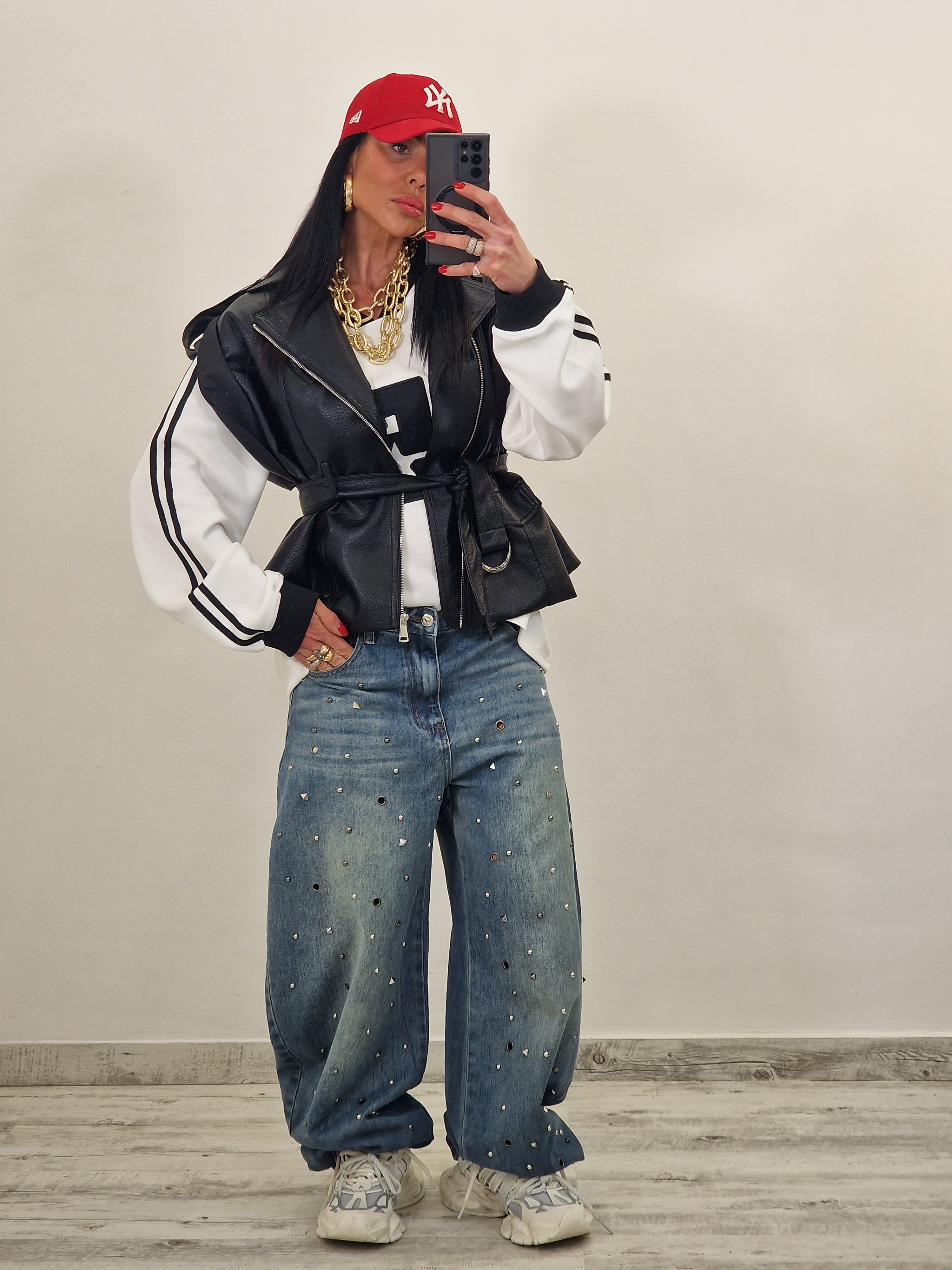 Smanicato in eco pelle con cintura