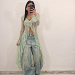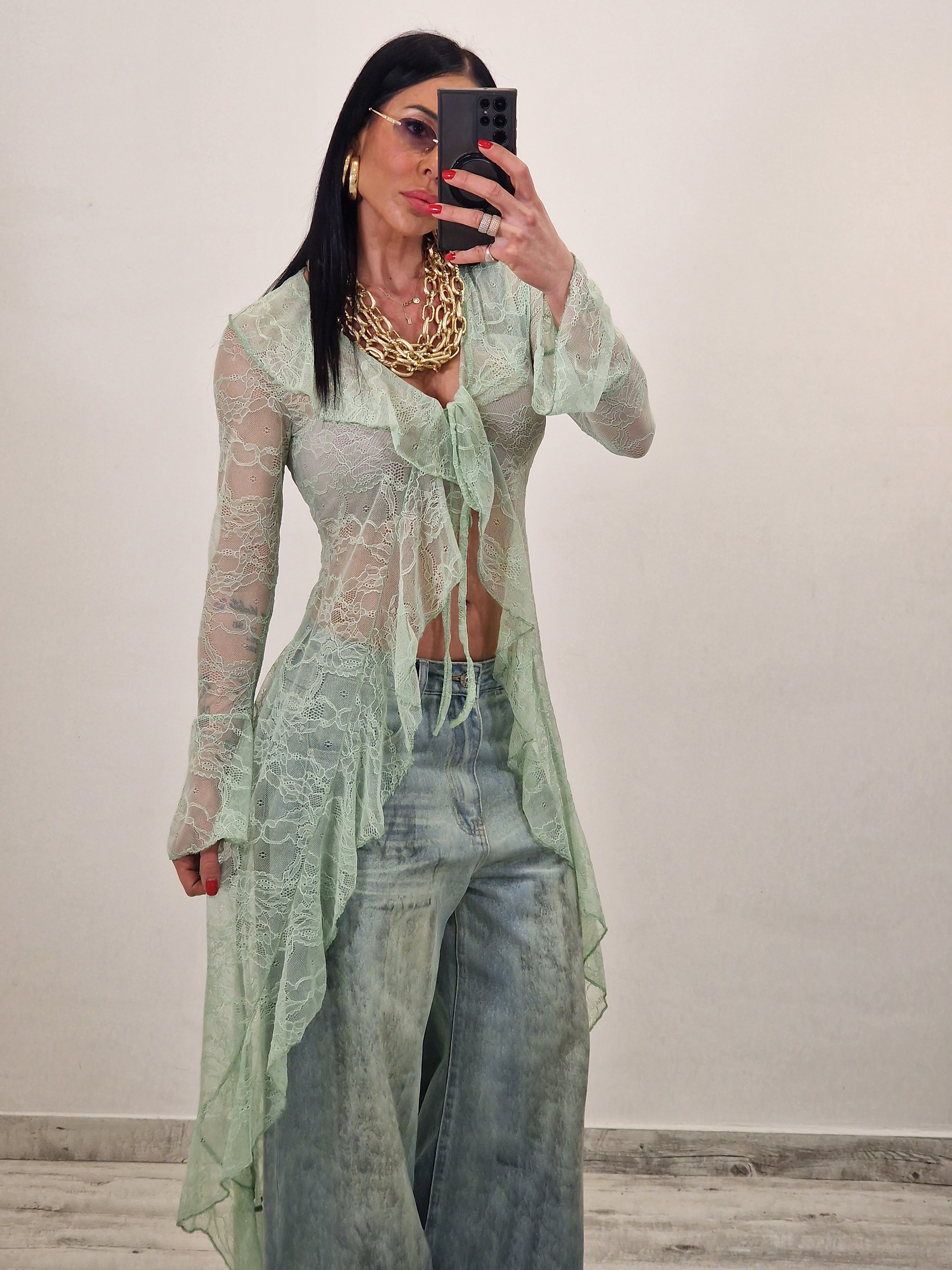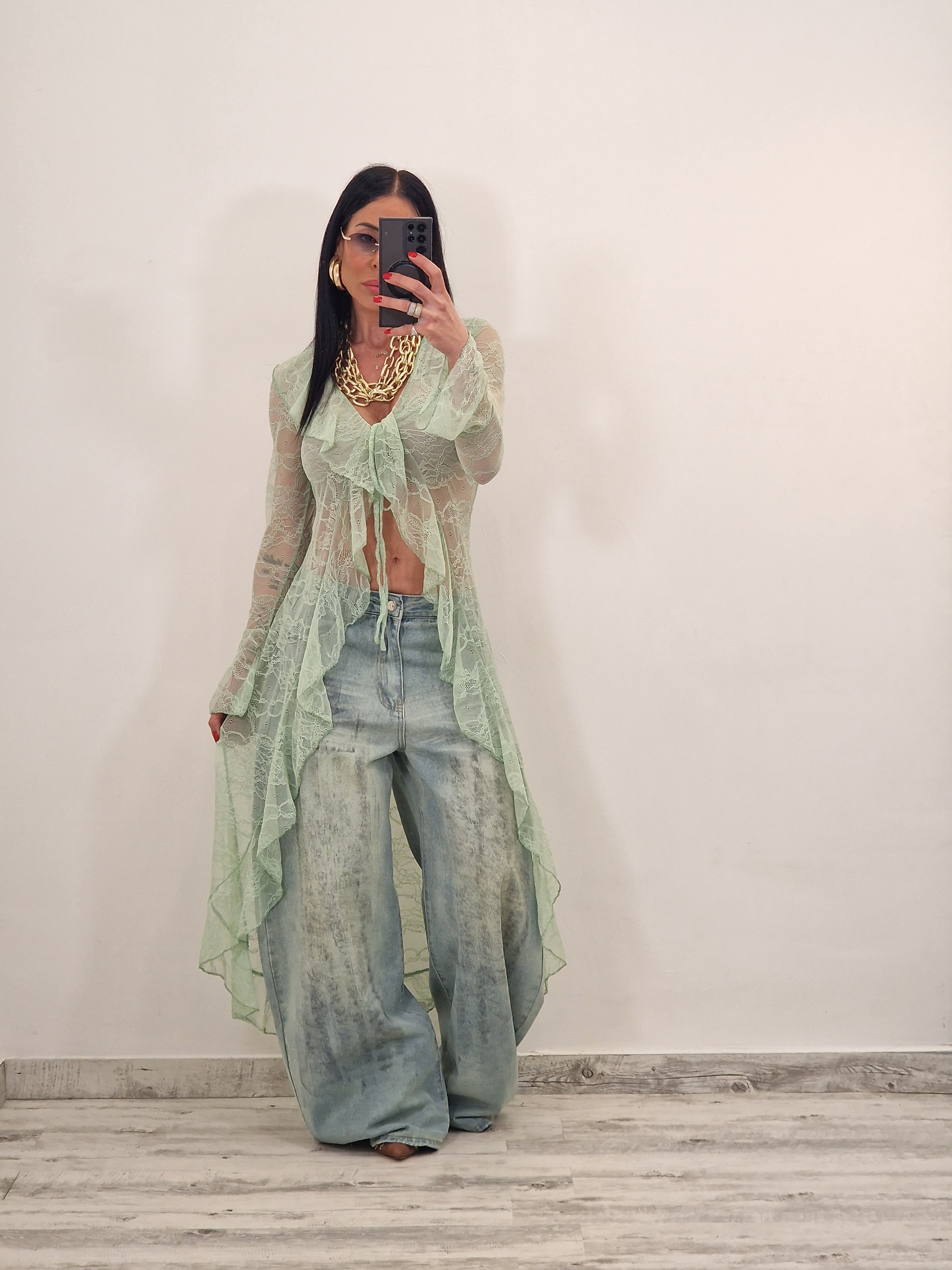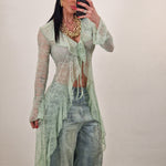 Spolverino lungo in pizzo con laccetto al centro per allacciare